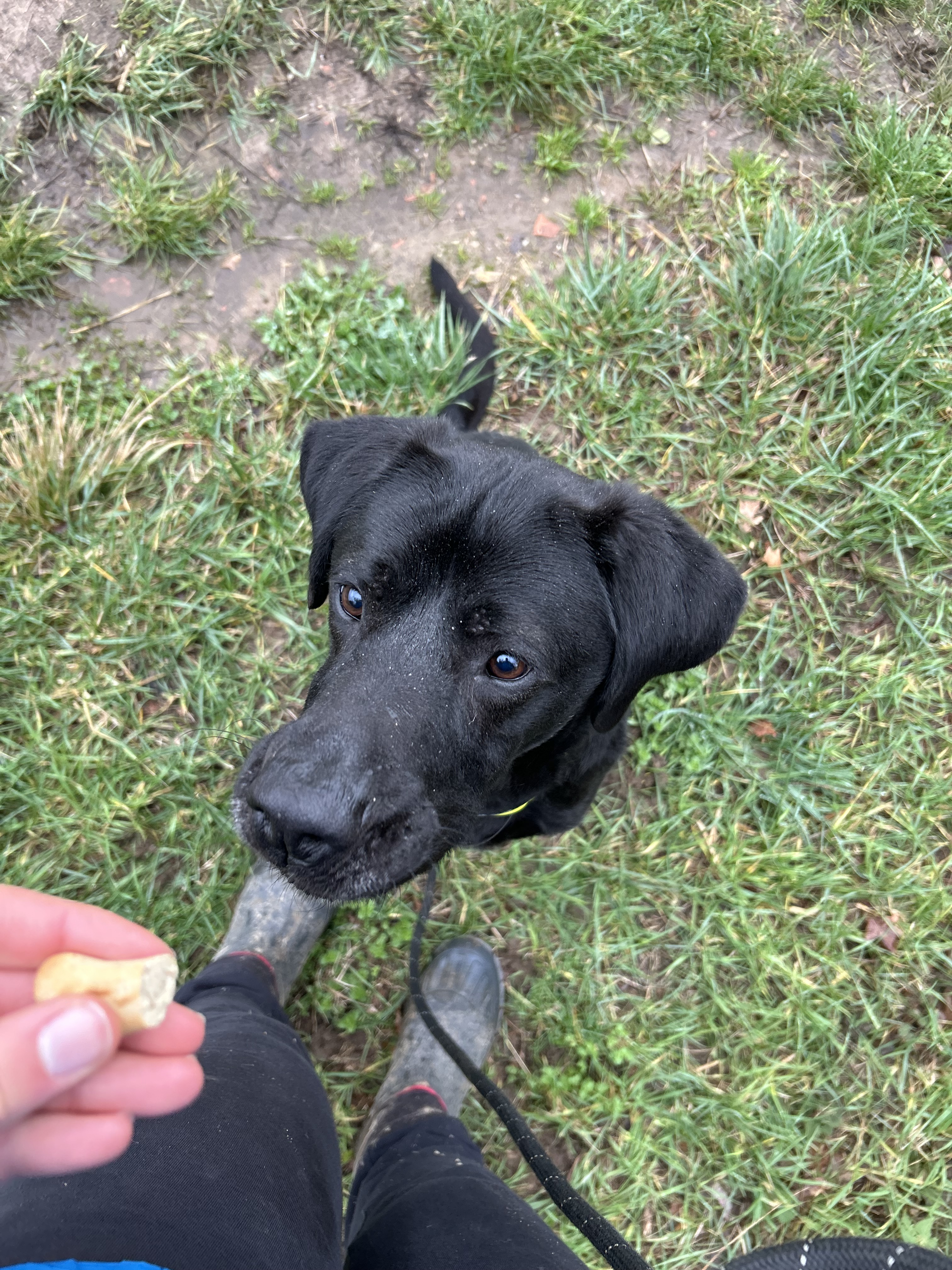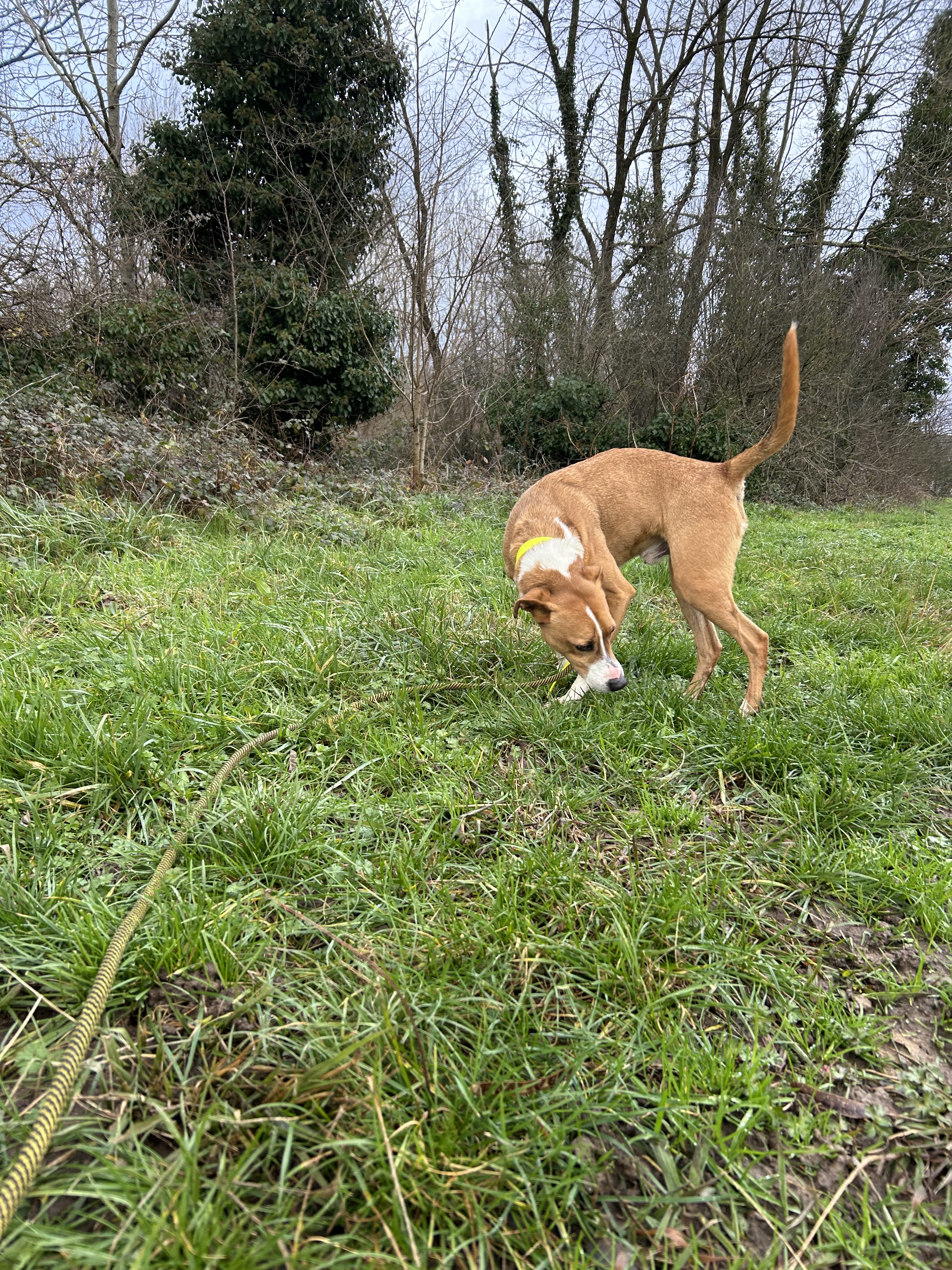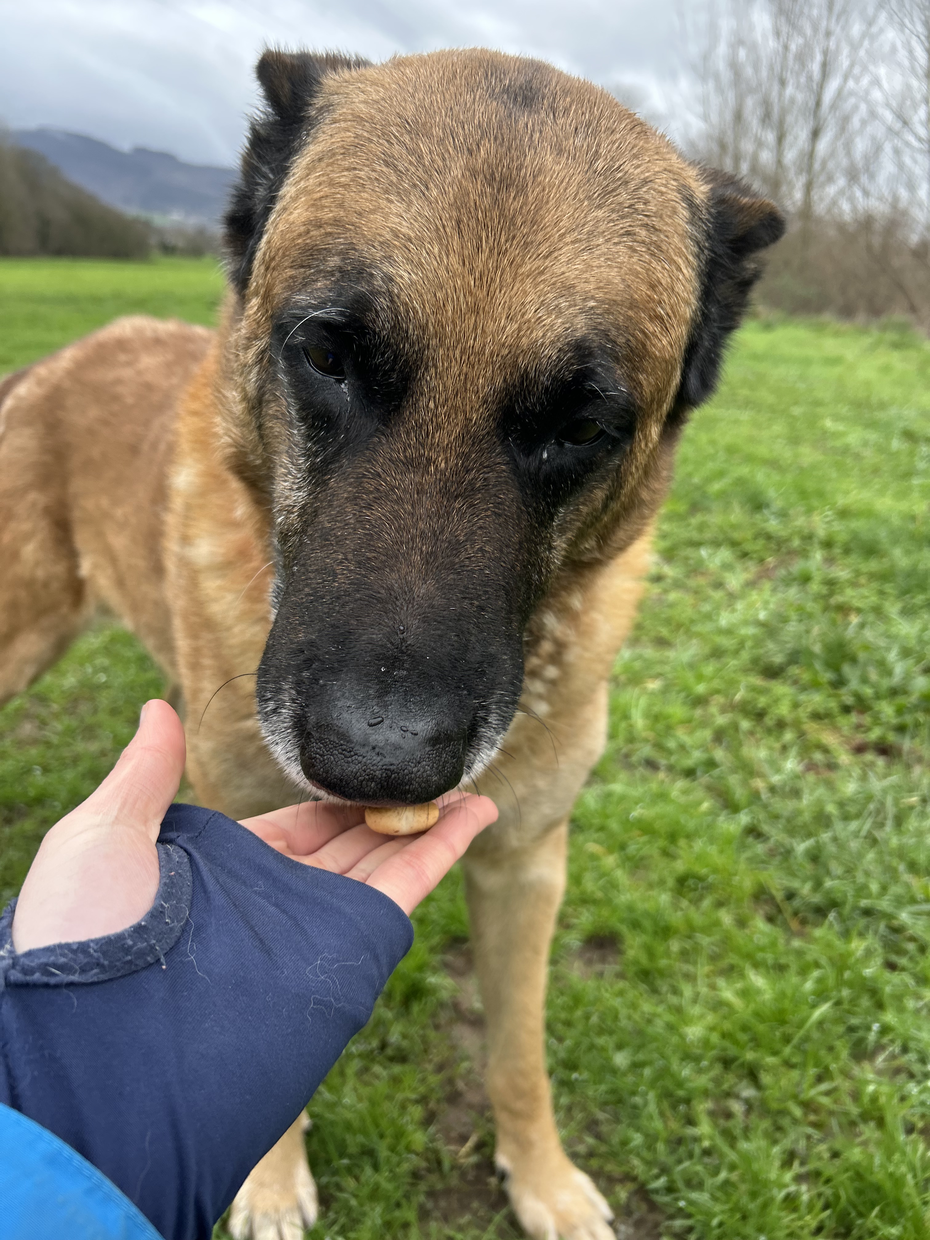 Réglisse (né en 2023) est un chien croisé Labrador et Berger, de 2 ans. Il est de taille moyenne, très gentil, affectueux et débordant de vitalité. Il se promène facilement. Réglisse ne demande qu’à être aimé, il vous le rendra au centuple !