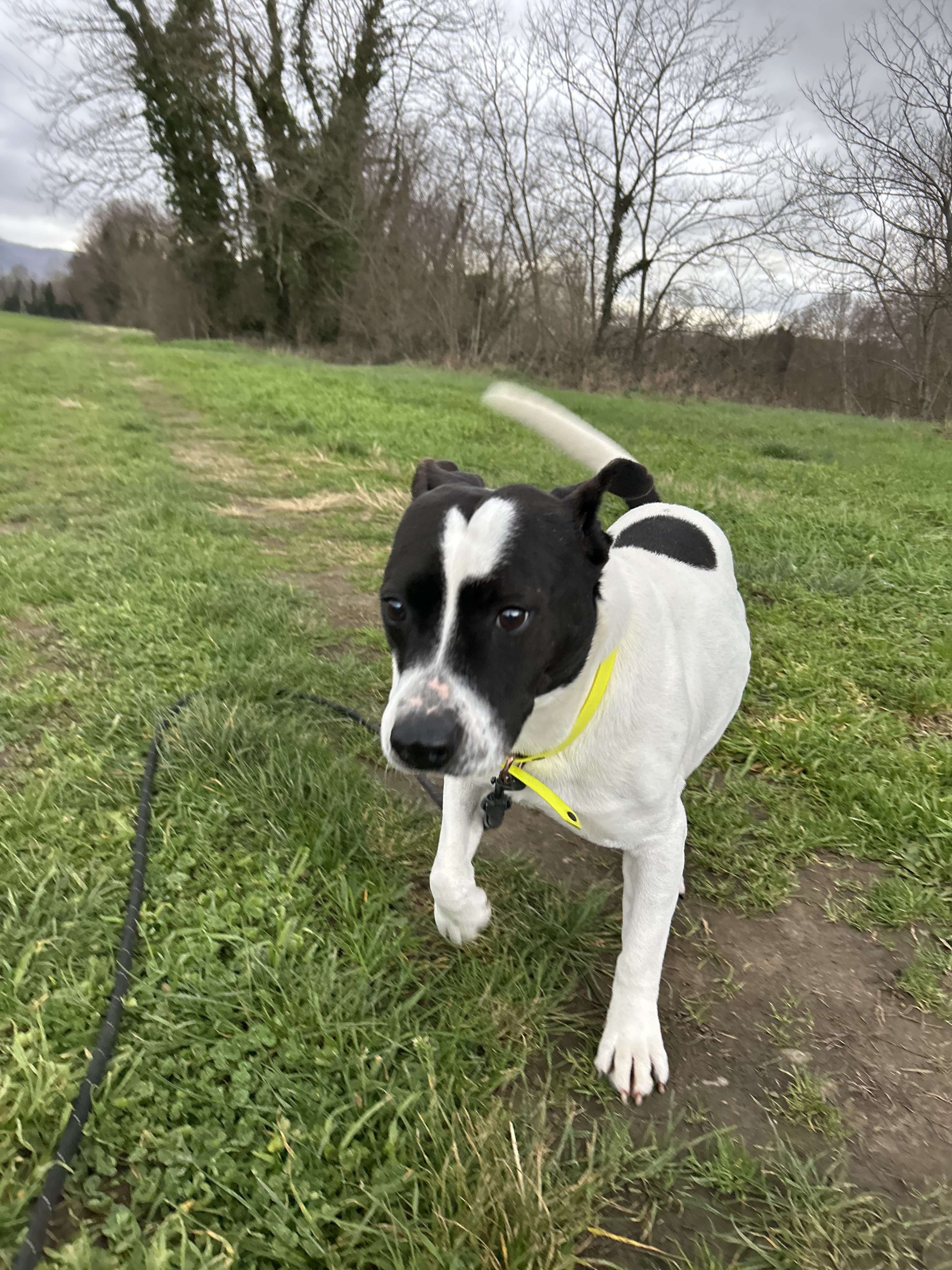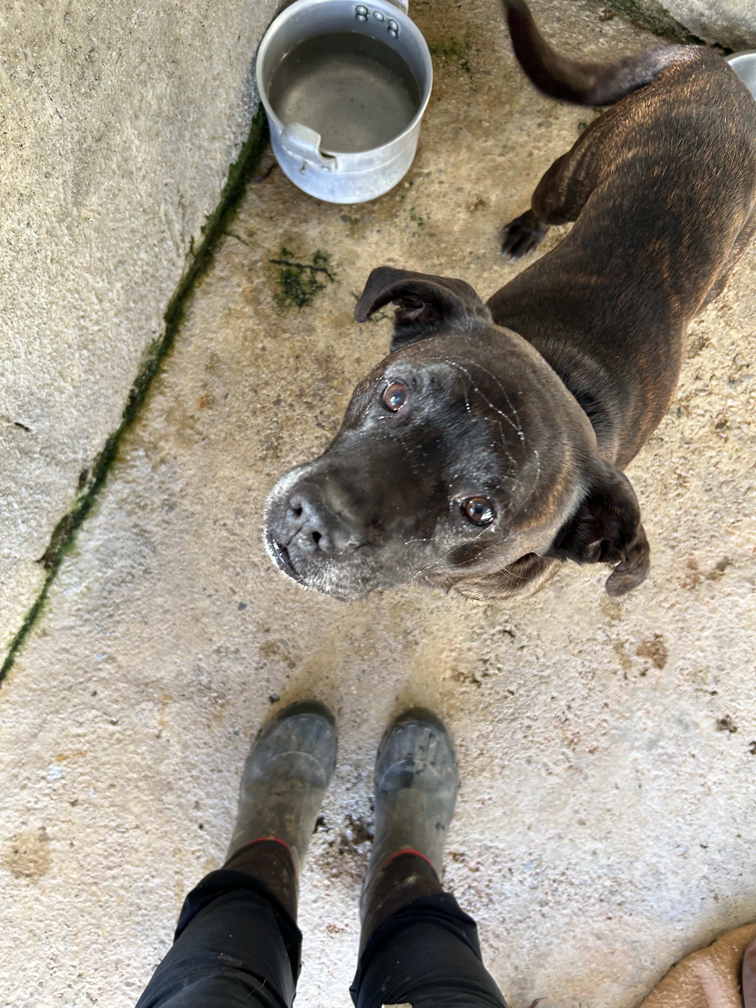Volt (né en 2024) est un jeune chien de taille moyenne, croisé Cane Corso. Il a été de nouveau abandonné et revient au refuge pour des raisons familiales… Volt est très affectueux et attachant. Il a besoin de se dépenser et il lui faudra un jardin. Il s’entend avec ses congénères mais il peut se montrer, parfois, un peu dominant. Volt s’entend aussi avec les chats. Volt désespère se trouver, enfin, SA famille pour la vie !