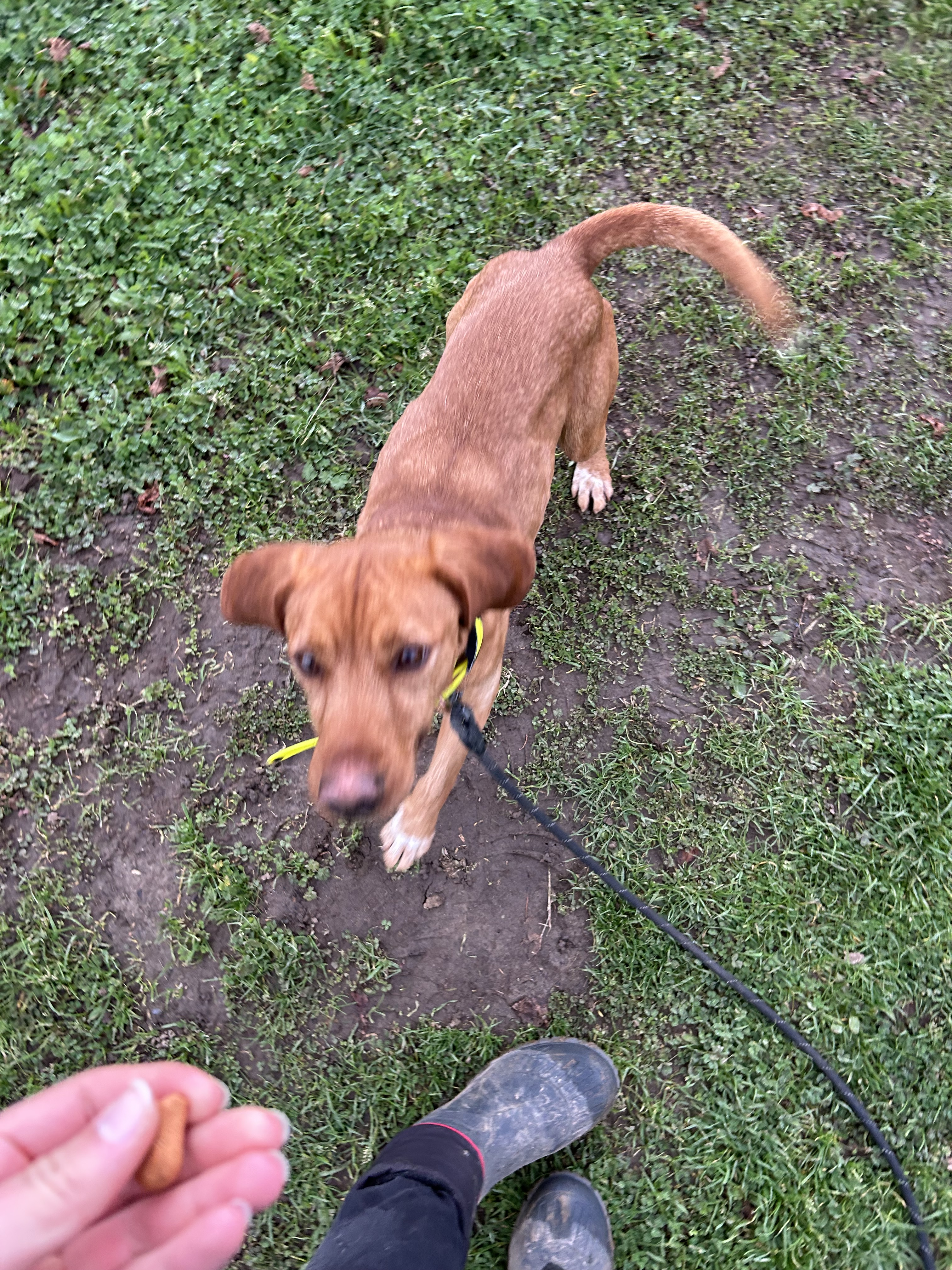 Ricky (né en 2025) est un jeune chien de taille moyenne, d’un an, croisé Fauve de Bretagne. Ricky est adorable mais encore craintif avec les personnes qu’il ne connaît pas. En venant le voir régulièrement, Ricky vous accordera sa confiance et vous en sera très reconnaissant !