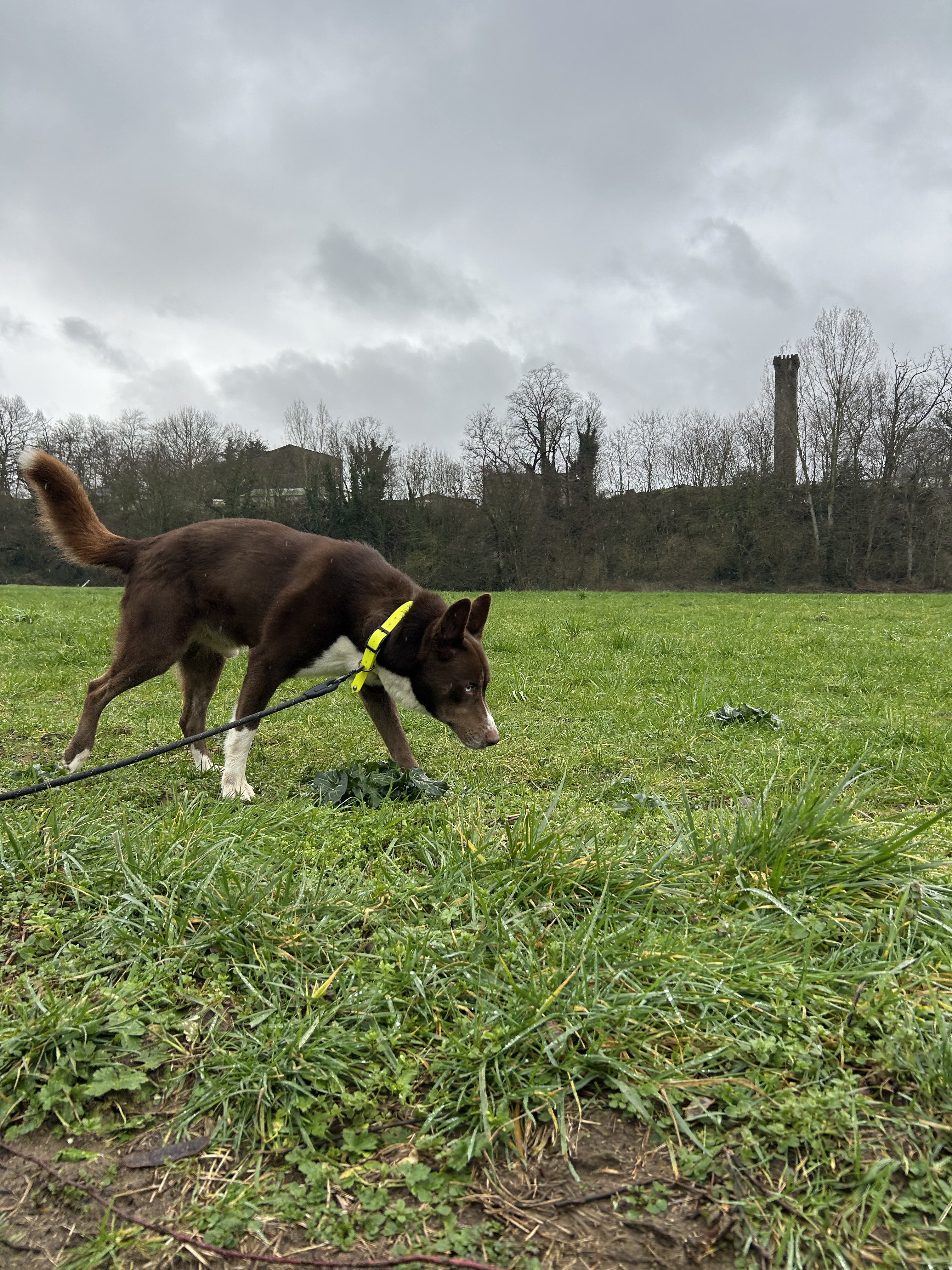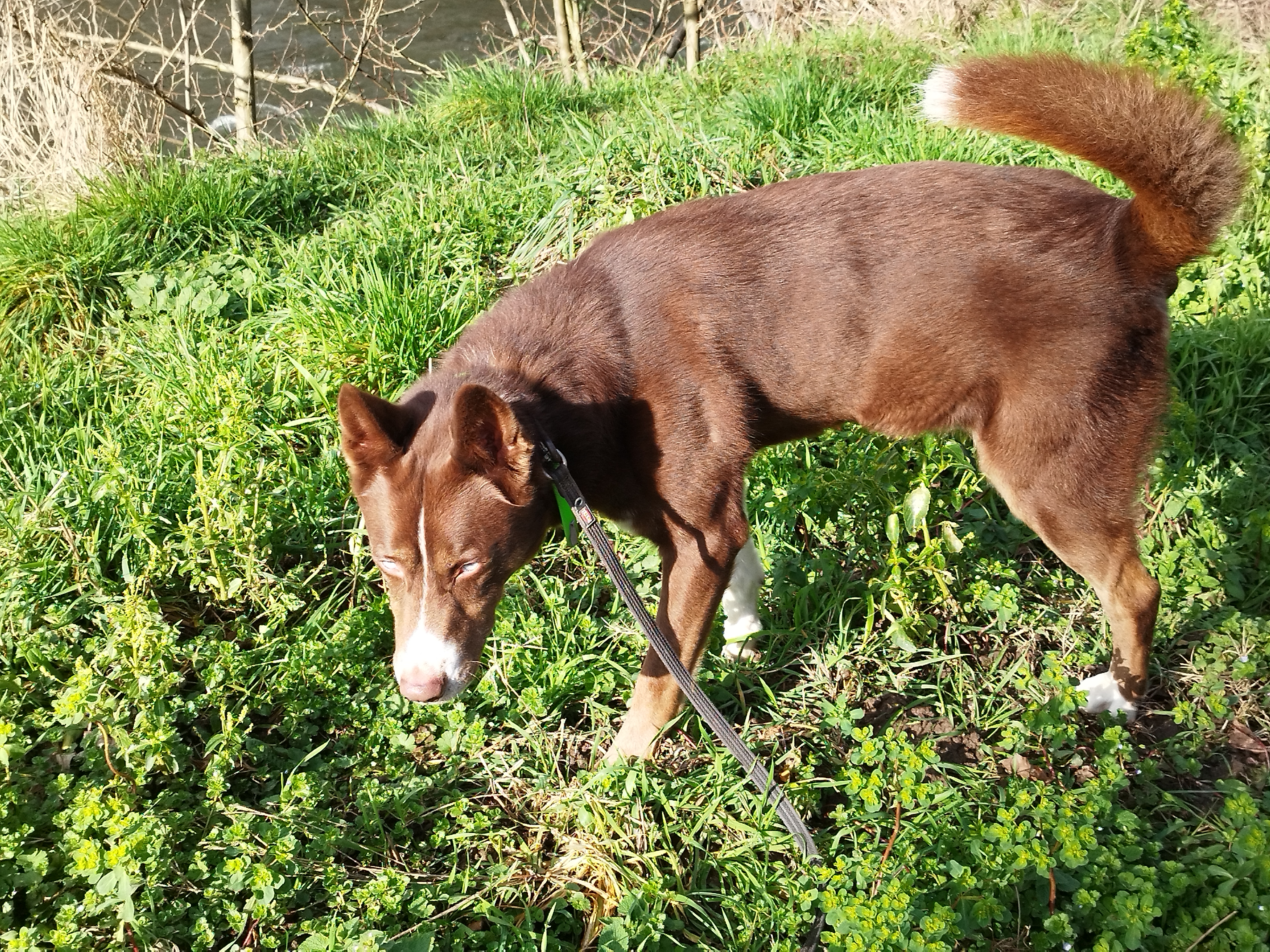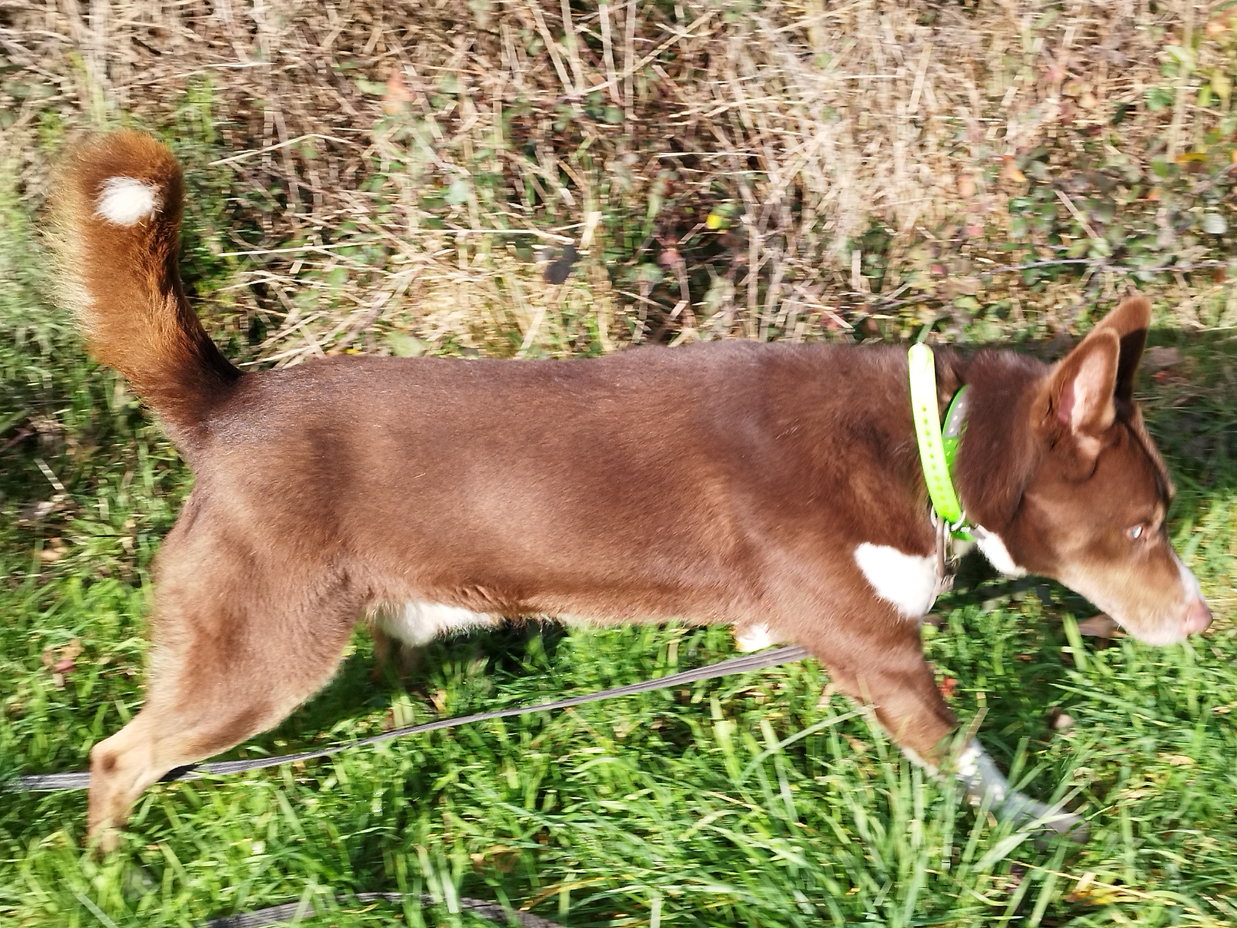 Cookaï (6 ans en 2026) est un croisé Chien d’ours de Carélie. C’est une race de chien originaire de Finlande, créée pour travailler et chasser le gros gibier comme l’ours et l’élan. Cookaï est un chien de taille moyenne, robuste, vigoureux et dynamique. Pendant les promenades, Cookaï est très intéressé par les odeurs et la découverte de son environnement. Il a des bases d’éducation et ne demande qu’à progresser. Cookaï sera heureux et câlin dans une maison avec un jardin bien clôturé (2 mètres de hauteur) tout en bénéficiant de longues sorties quotidiennes en pleine nature et éventuellement avec d’autres activités sportives.