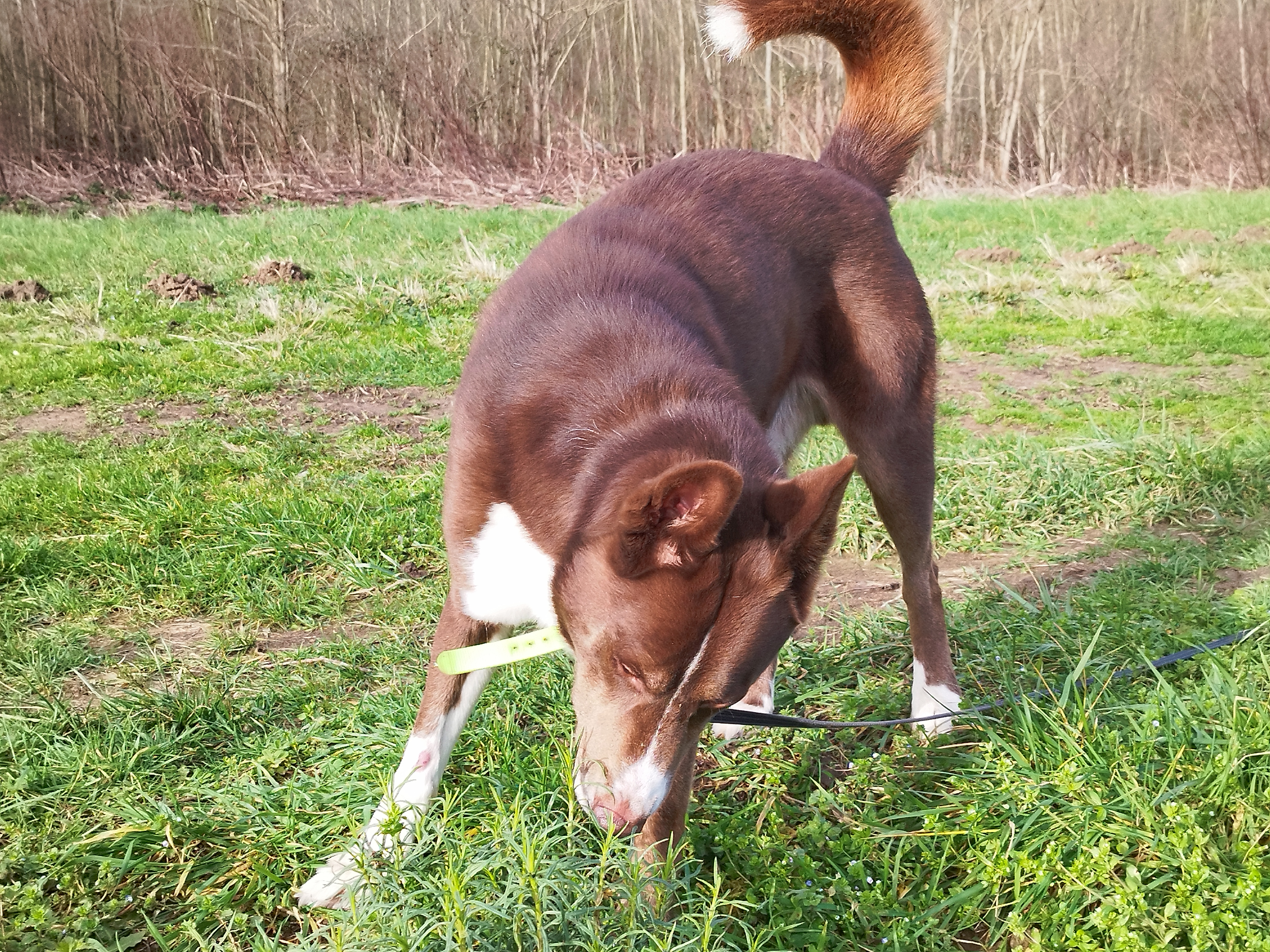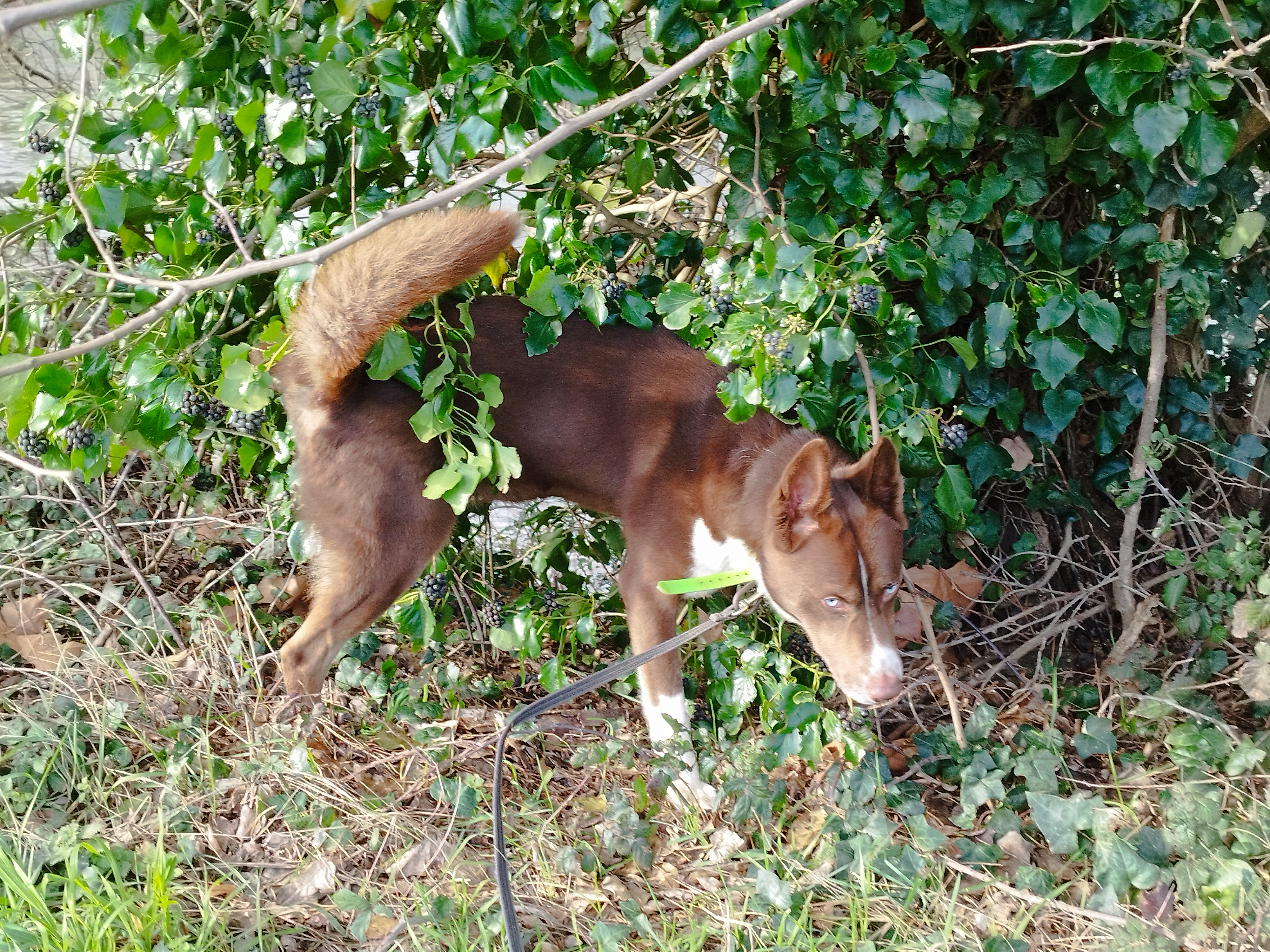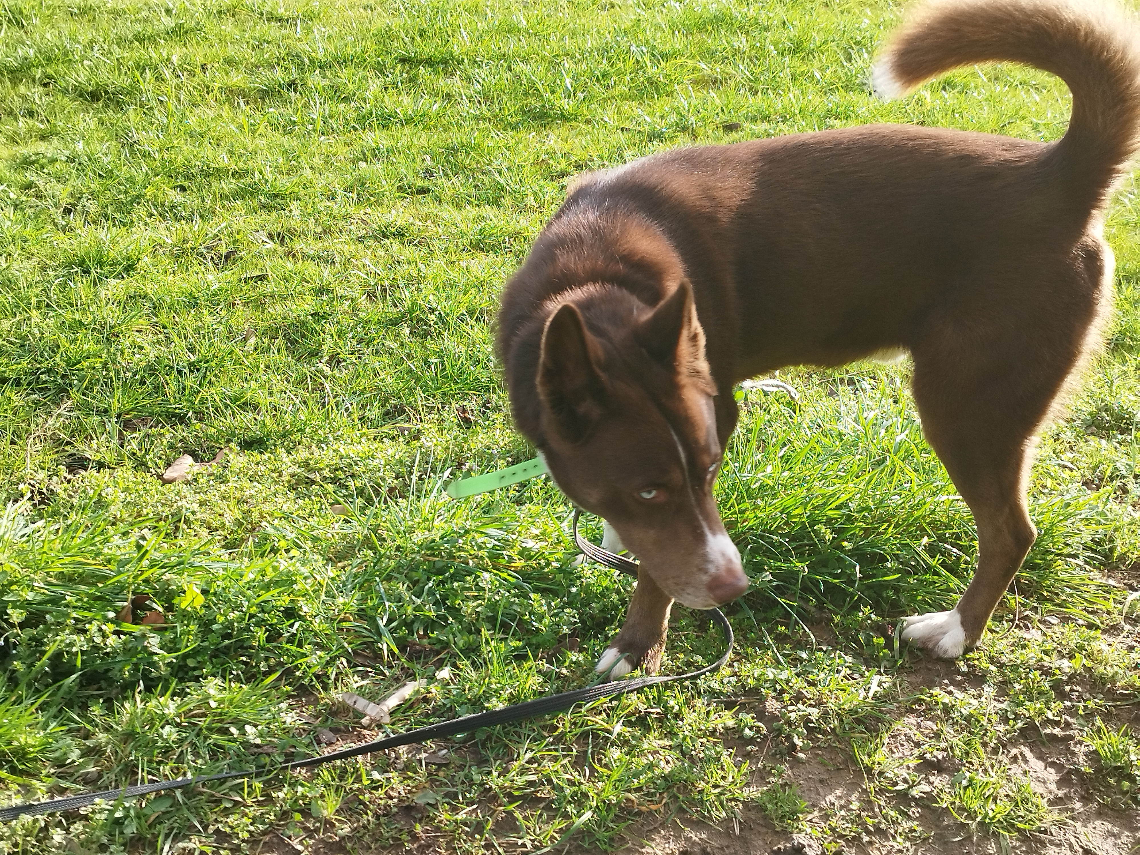 Cookaï (6 ans en 2026) est un croisé Chien d’ours de Carélie. C’est une race de chien originaire de Finlande, créée pour travailler et chasser le gros gibier comme l’ours et l’élan. Cookaï est un chien de taille moyenne, robuste, vigoureux et dynamique. Pendant les promenades, Cookaï est très intéressé par les odeurs et la découverte de son environnement. Il a des bases d’éducation et ne demande qu’à progresser. Cookaï sera heureux et câlin dans une maison avec un jardin bien clôturé (2 mètres de hauteur) tout en bénéficiant de longues sorties quotidiennes en pleine nature et éventuellement avec d’autres activités sportives.