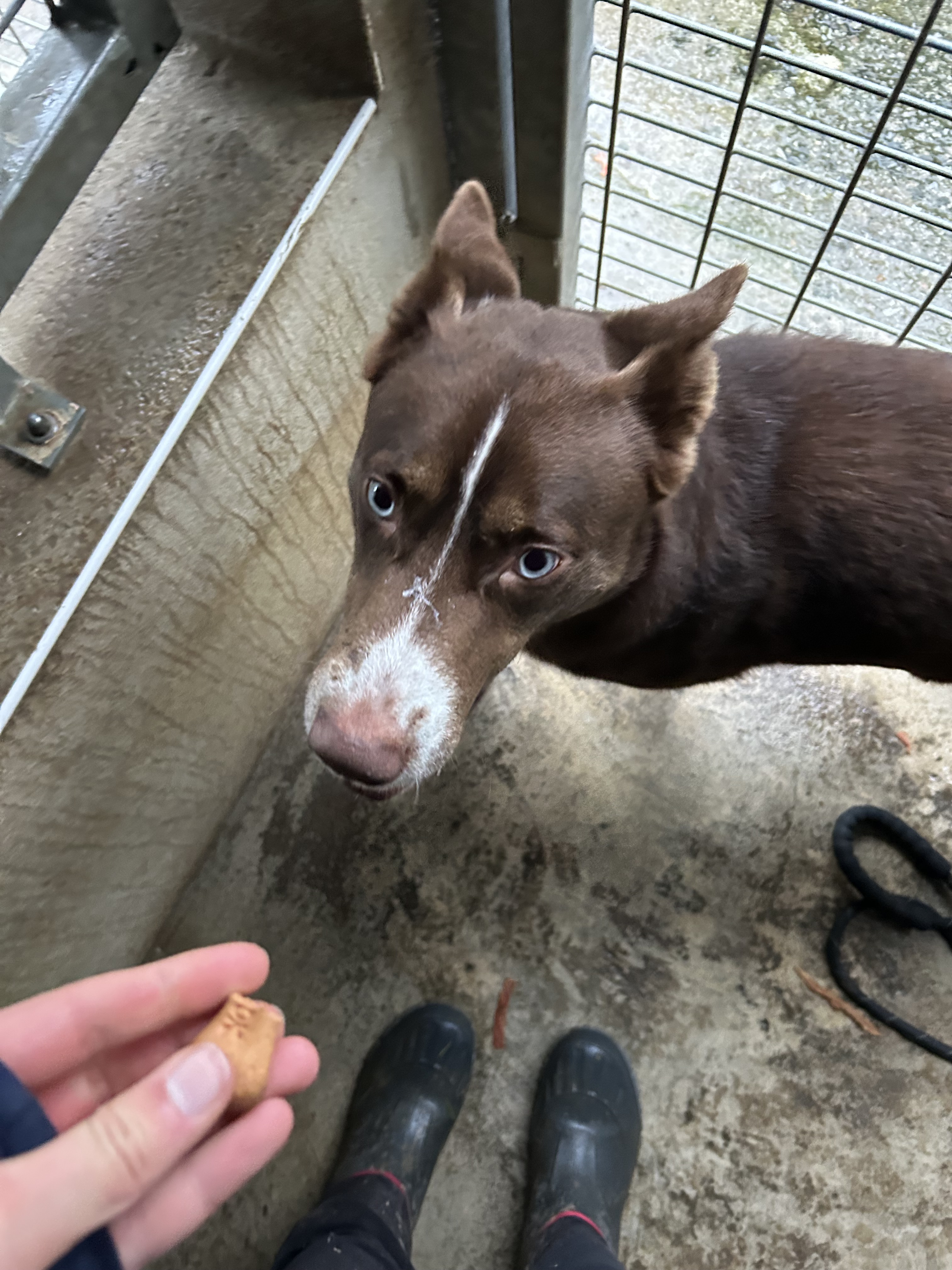 Éros (né en 2025) est un très jeune chien d’un an, croisé Husky. Il a été abandonné. Il se promène facilement et obéit. Éros aura besoin de beaucoup se dépenser, physiquement et mentalement. Ce sera un grand chien puissant. Éros accepte les autres chiens et veut jouer avec eux.