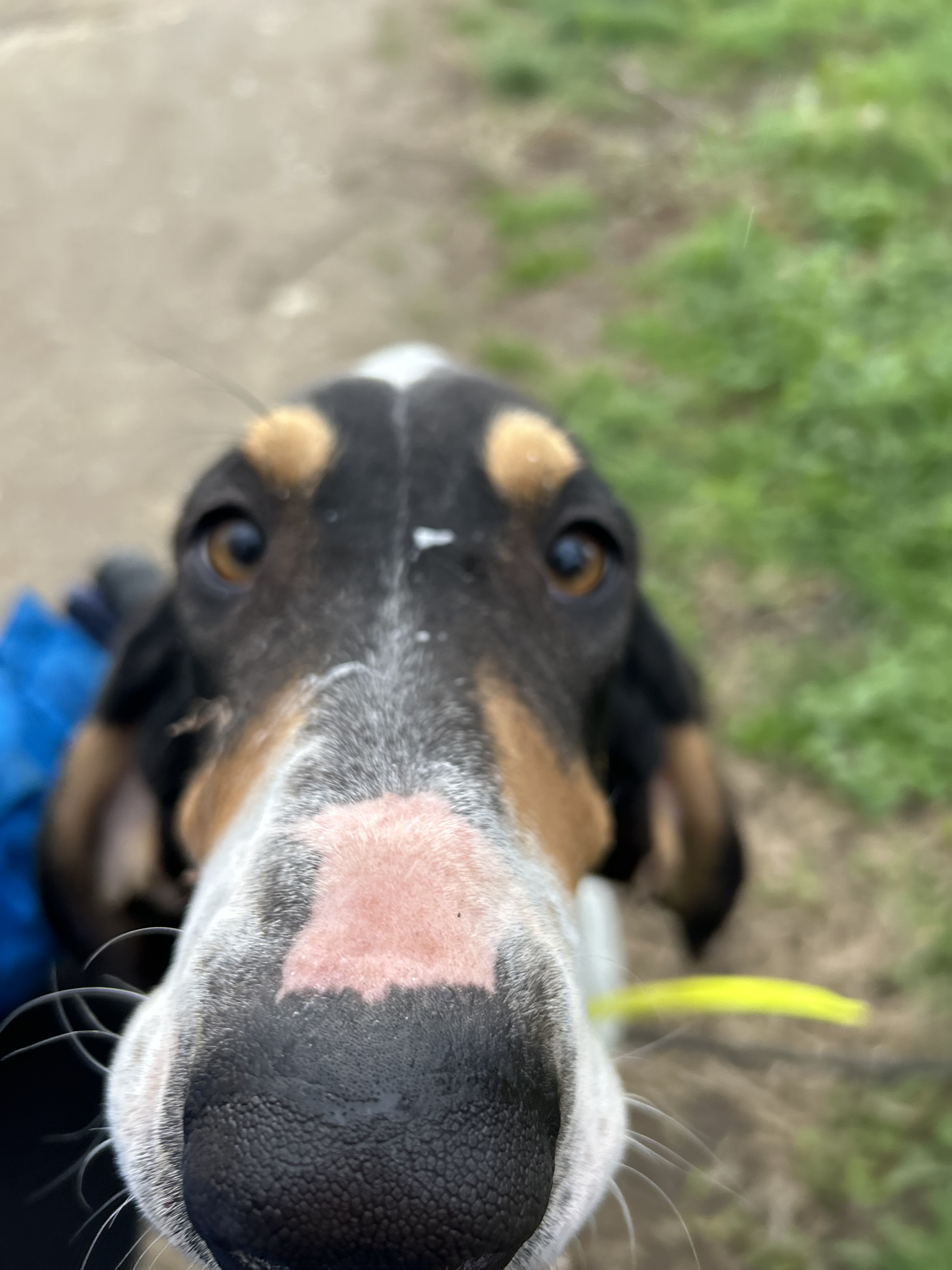 Tiaré (née en 2022) est une chienne de grande taille, de 4 ans environ, croisée chien courant. Tiaré a été trouvée. Elle est très douce, fait plein de câlins et se promène facilement.