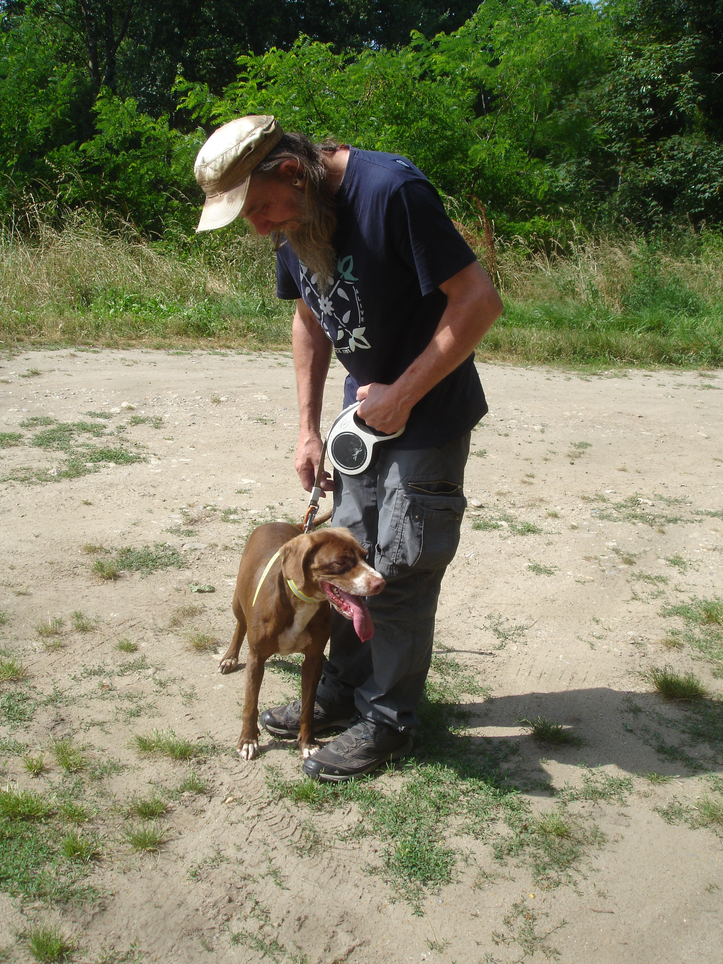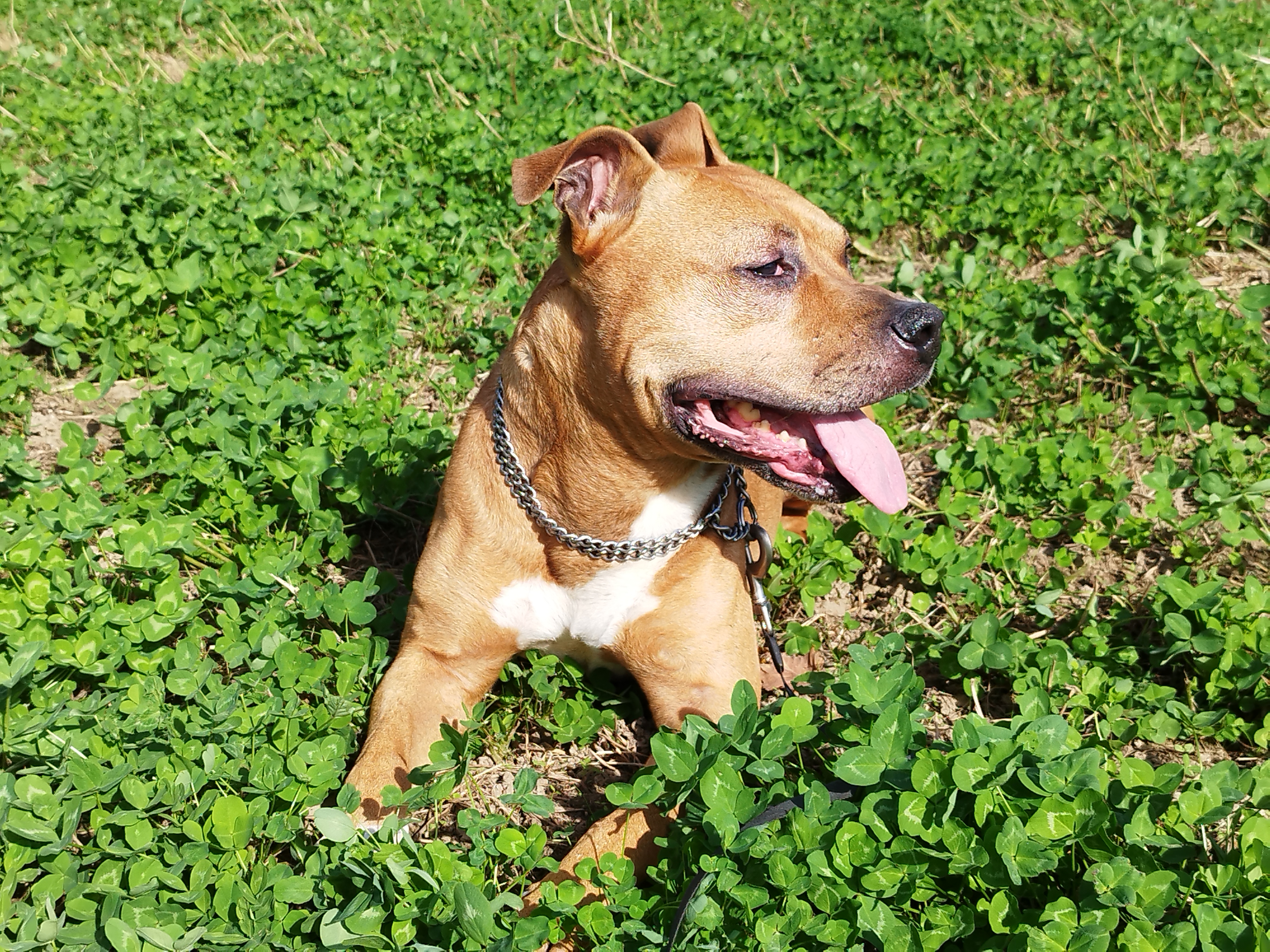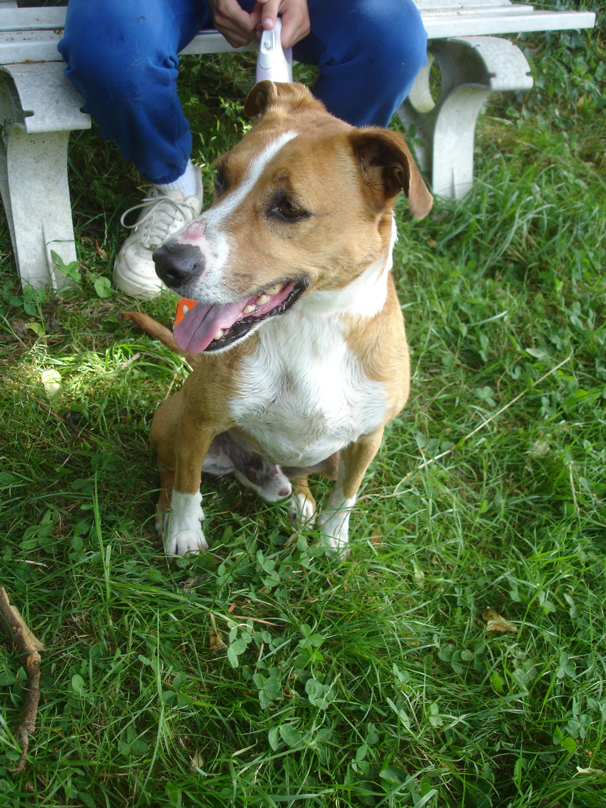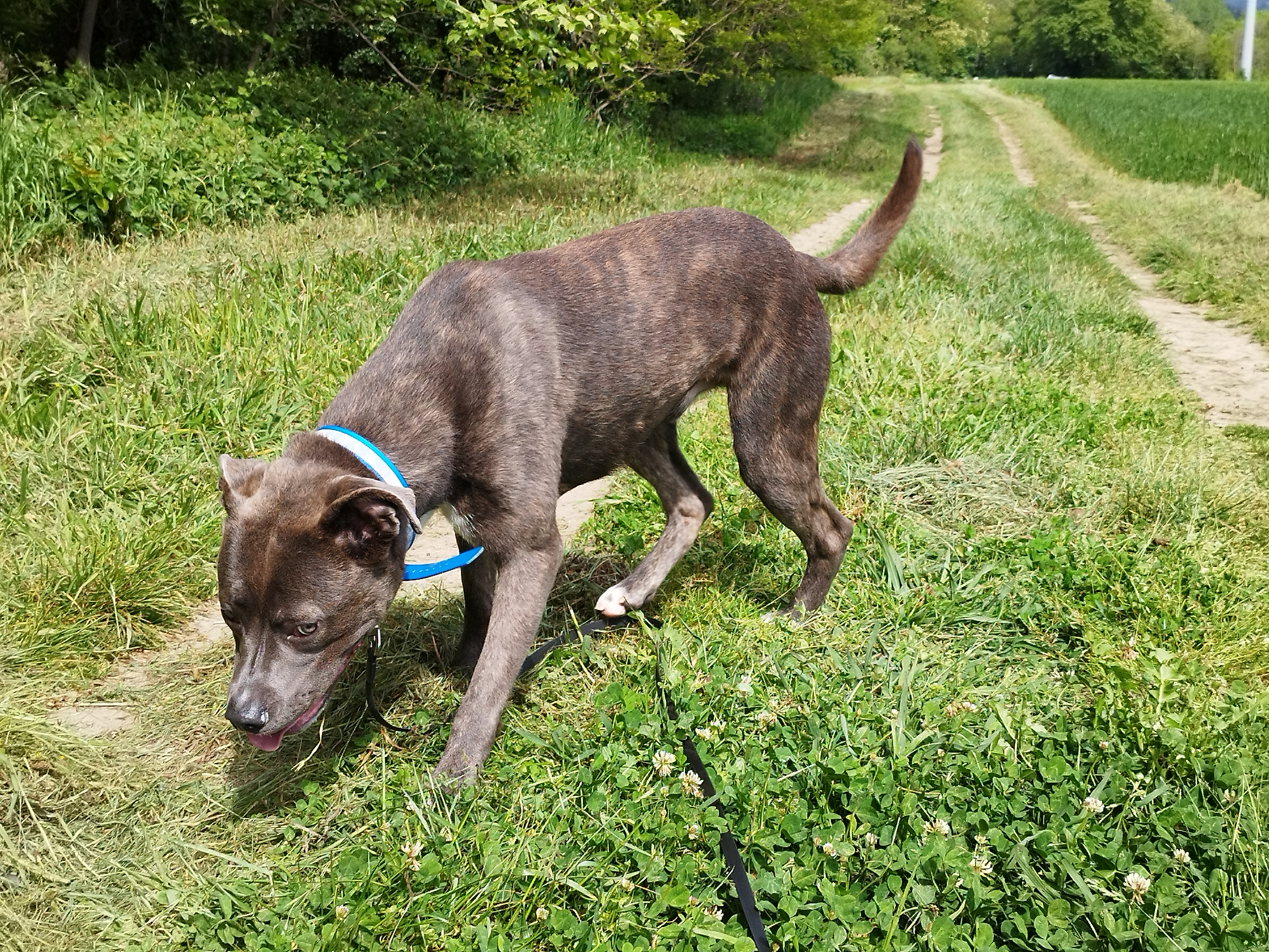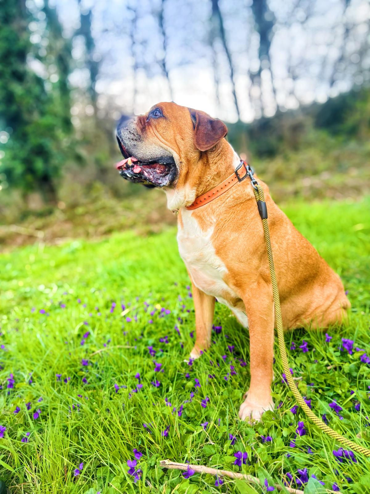 Pilou (né en 2016) est un chien de taille moyenne, croisé Boxer. Pilou apprécie les sorties et s’intéresse à son environnement. Il se promène en toute confiance, détendu. Parfois, il se repose sur l’herbe fraîche et se laisse inonder de soleil ! Pilou est câlin et très affectueux.
