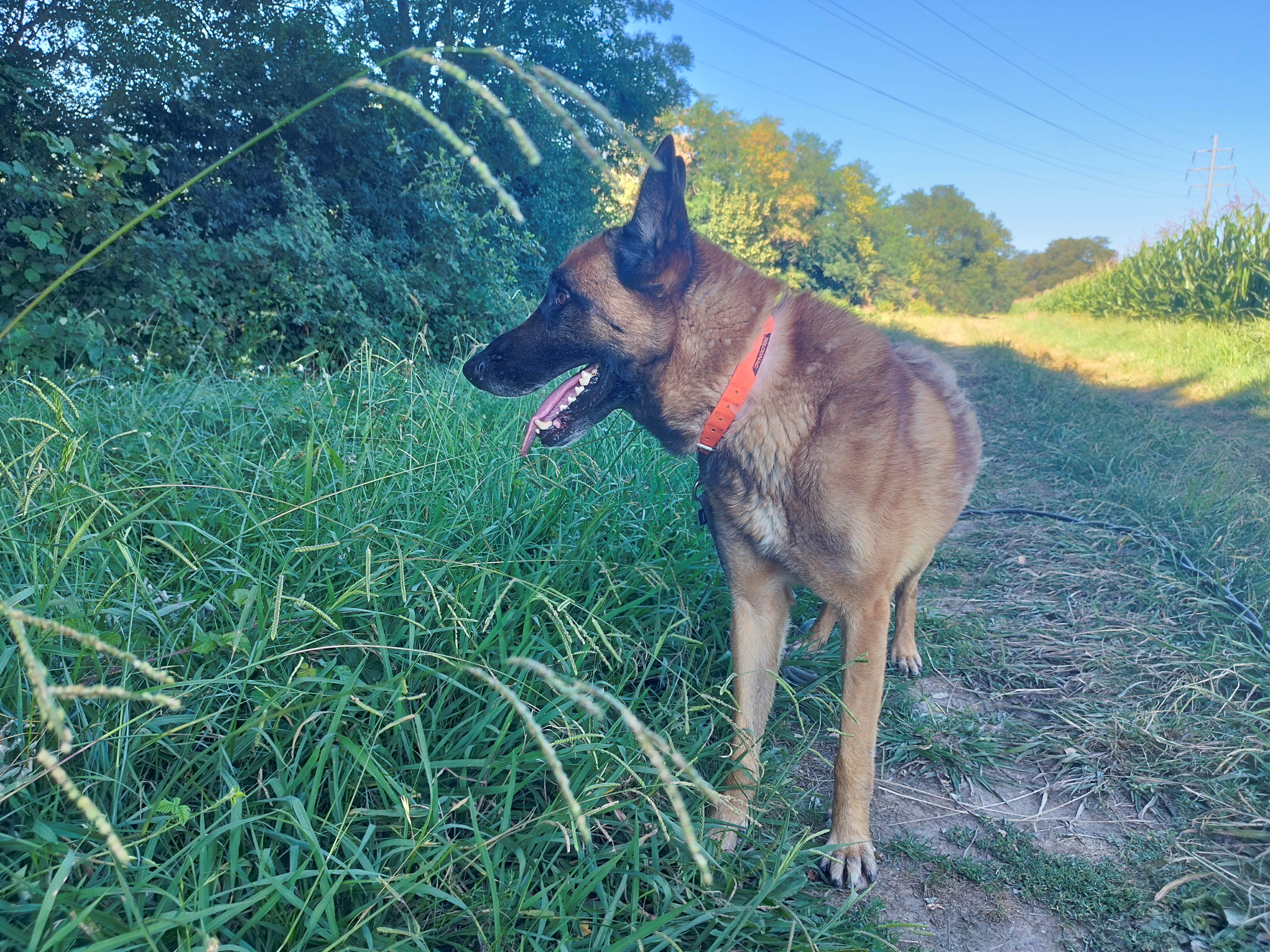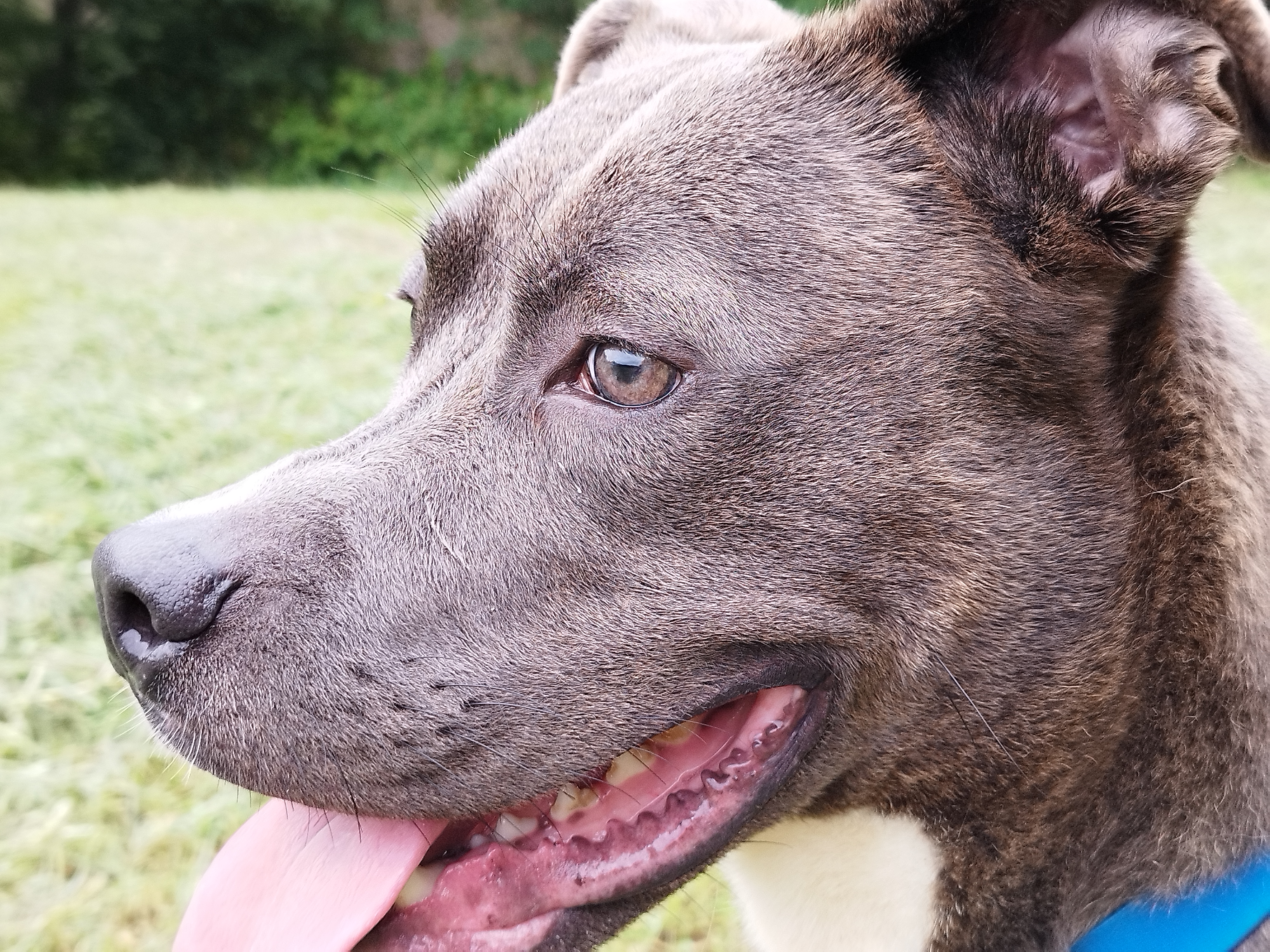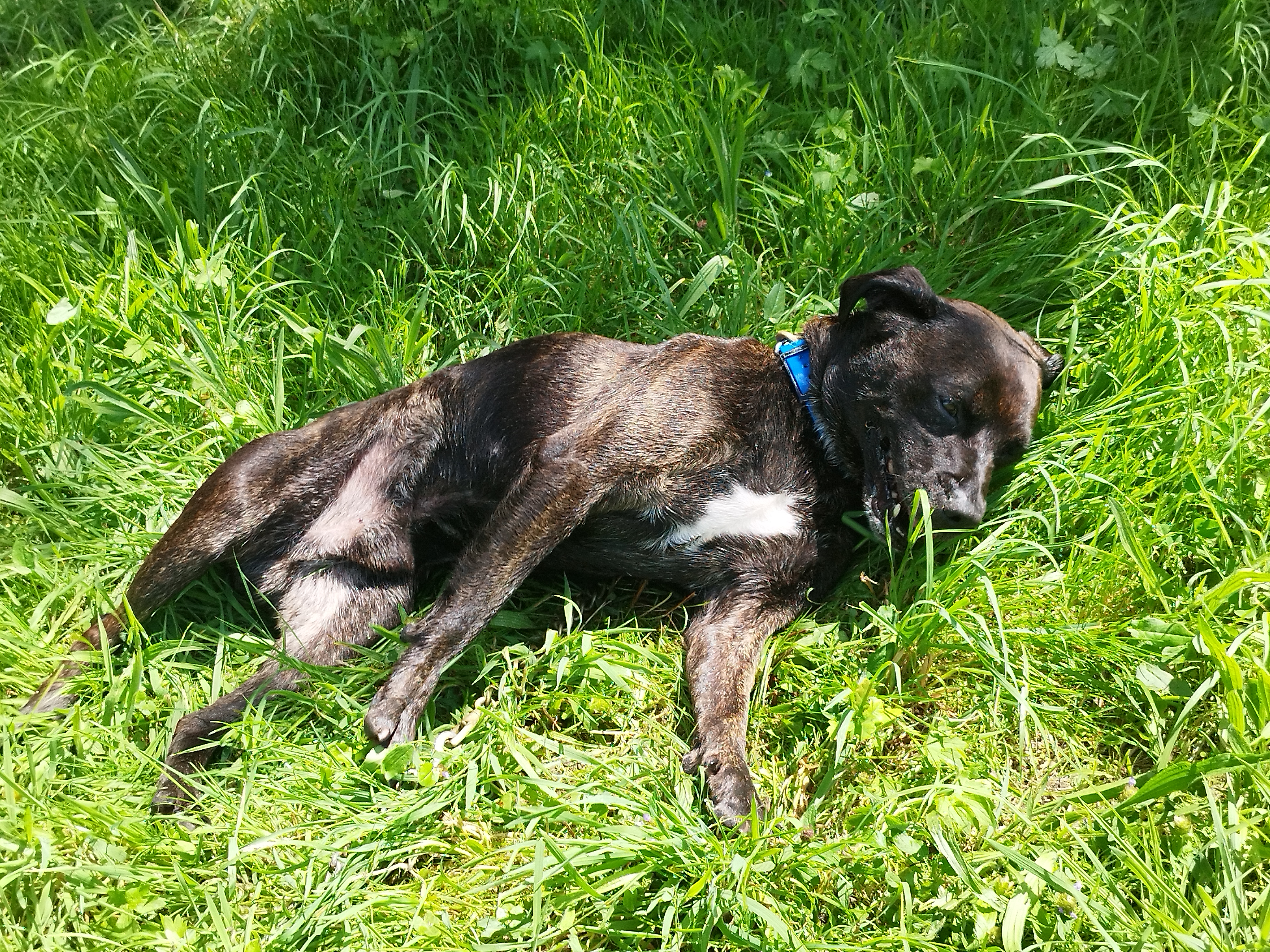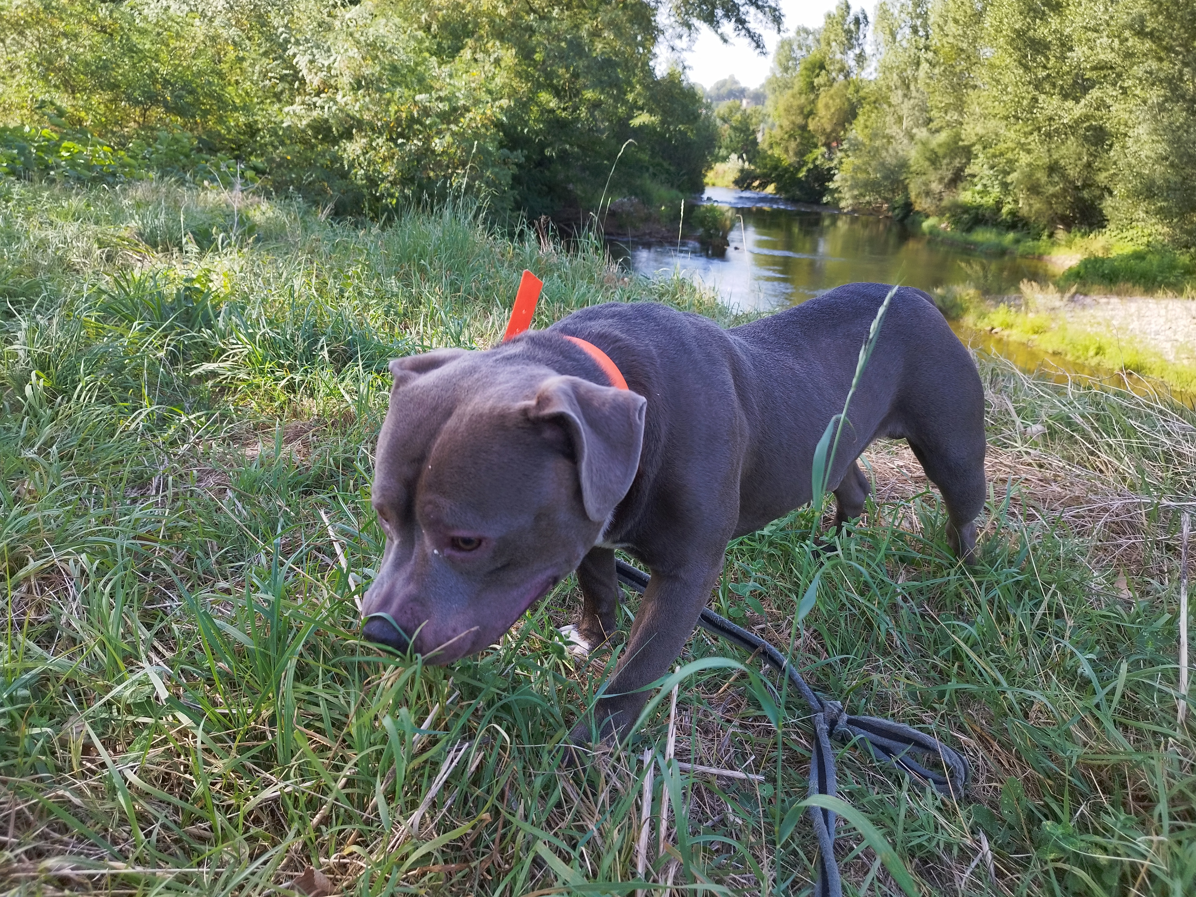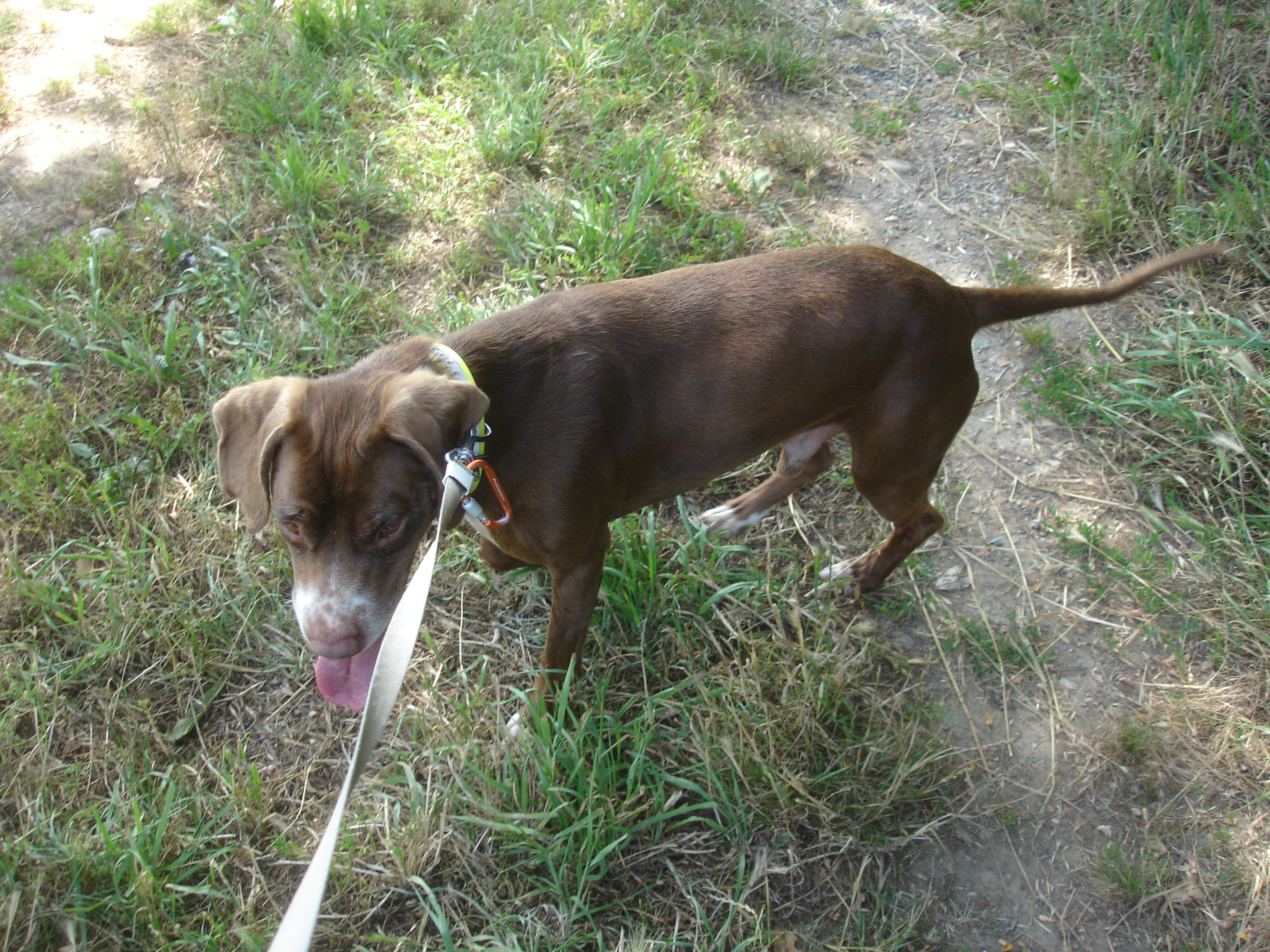 Pilou (né en 2016) est un chien de taille moyenne, croisé Boxer. Pilou apprécie les sorties et s’intéresse à son environnement. Il se promène en toute confiance, détendu. Parfois, il se repose sur l’herbe fraîche et se laisse inonder de soleil ! Pilou est câlin et très affectueux.