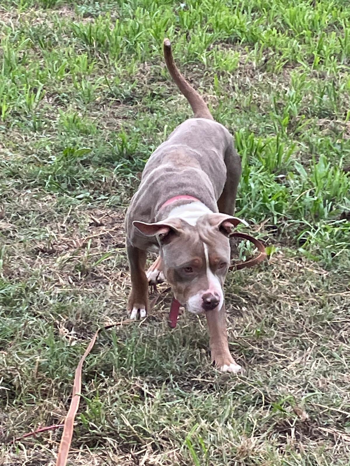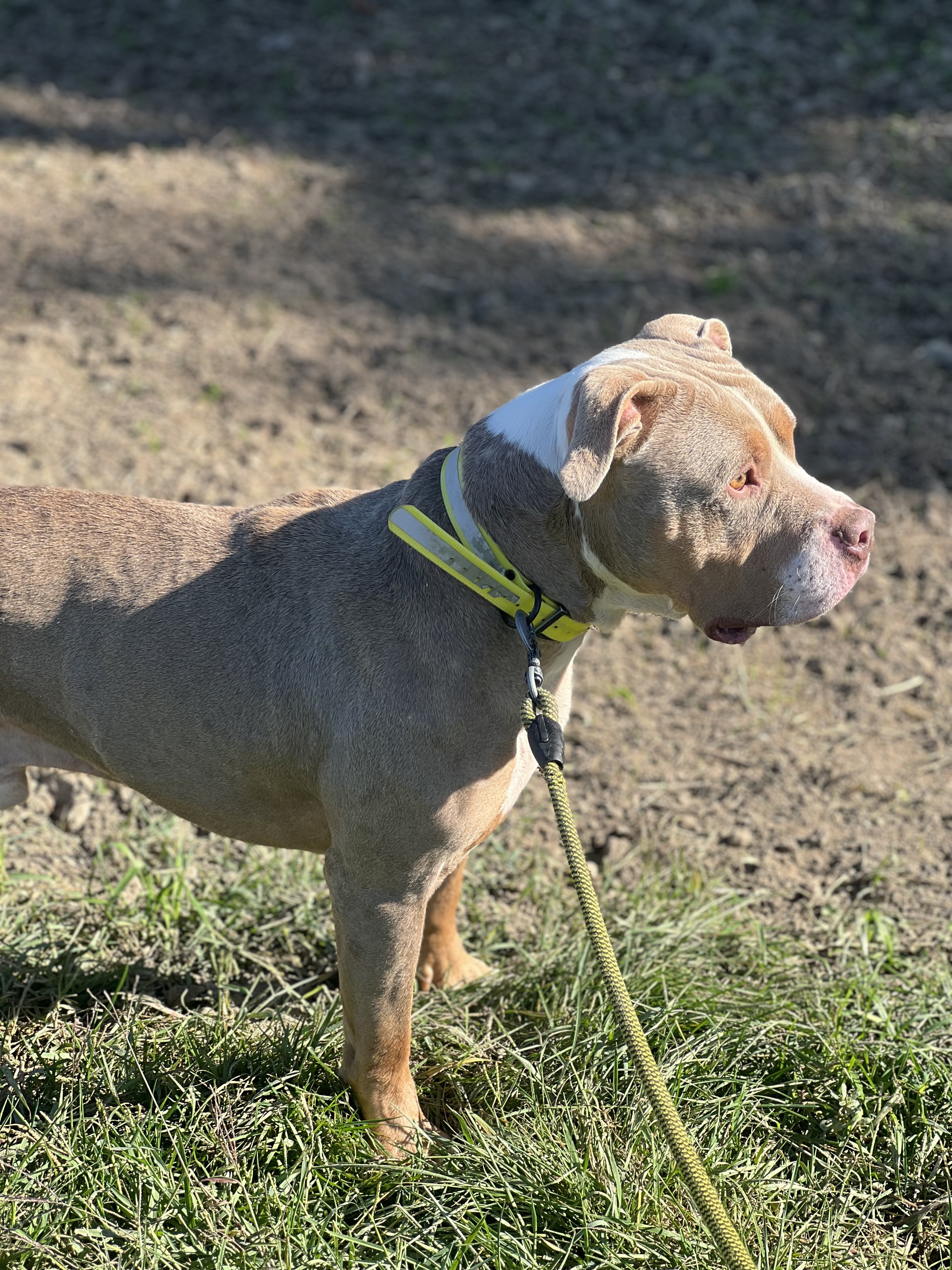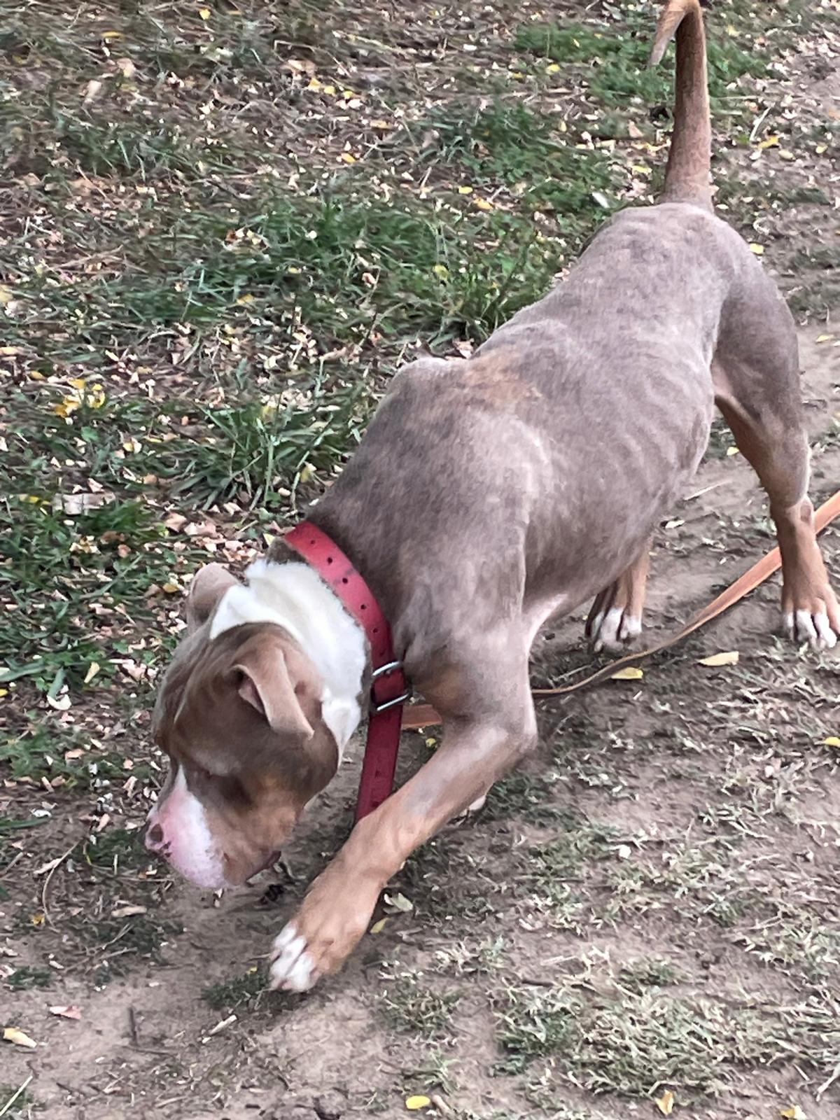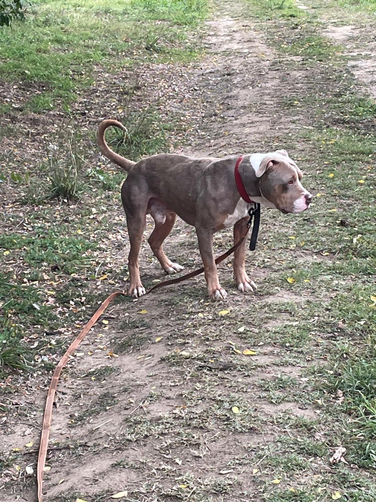 Shaman (né en 2023) est un chien puissant de 2 ans, de taille moyenne, croisé American Bully. Il est très proche des humains et aime les caresses. Shaman adore l’eau et il est même difficile de l’en sortir ! Un vrai poisson ! Shaman sera placé dans un foyer sans enfant.