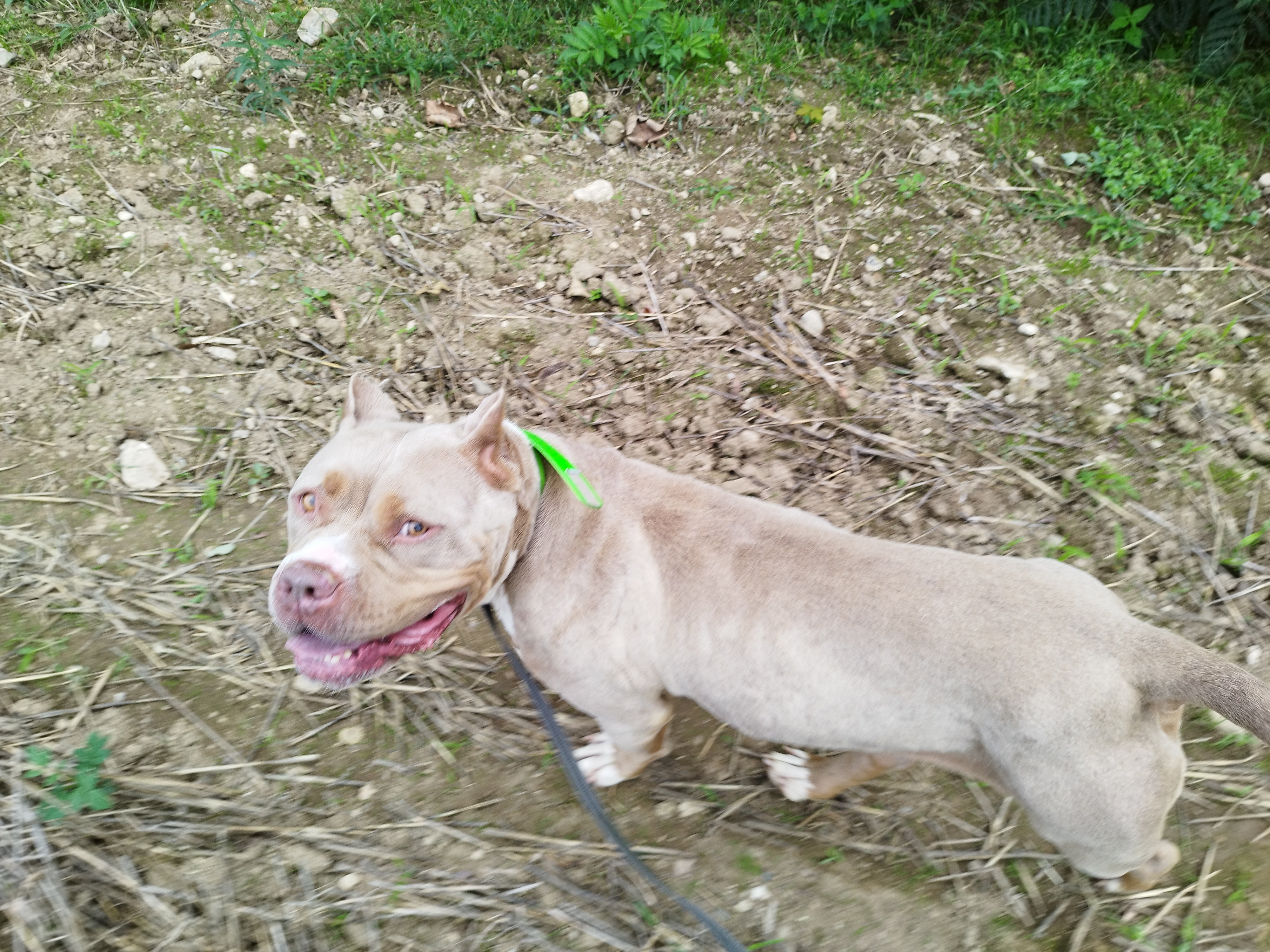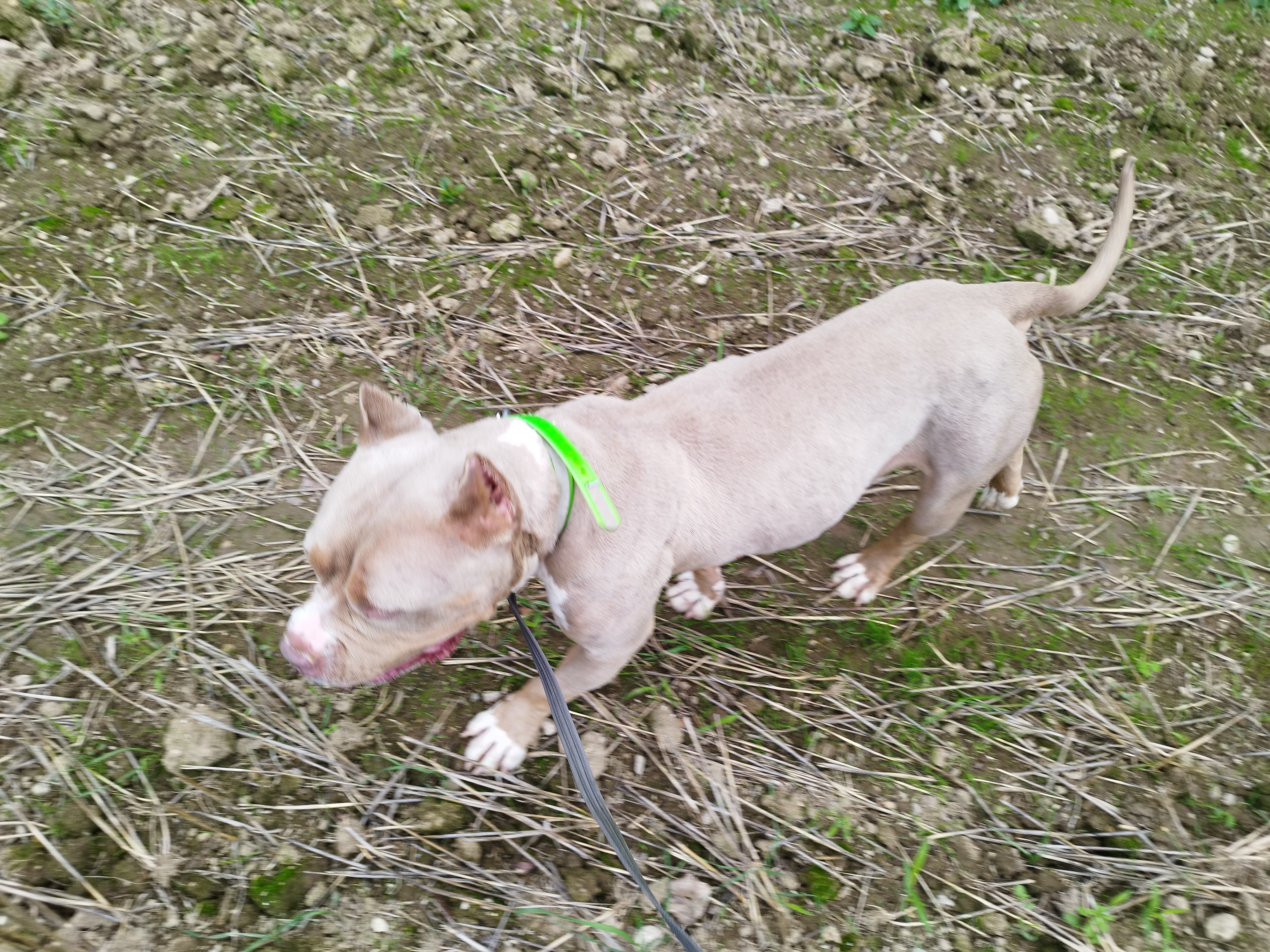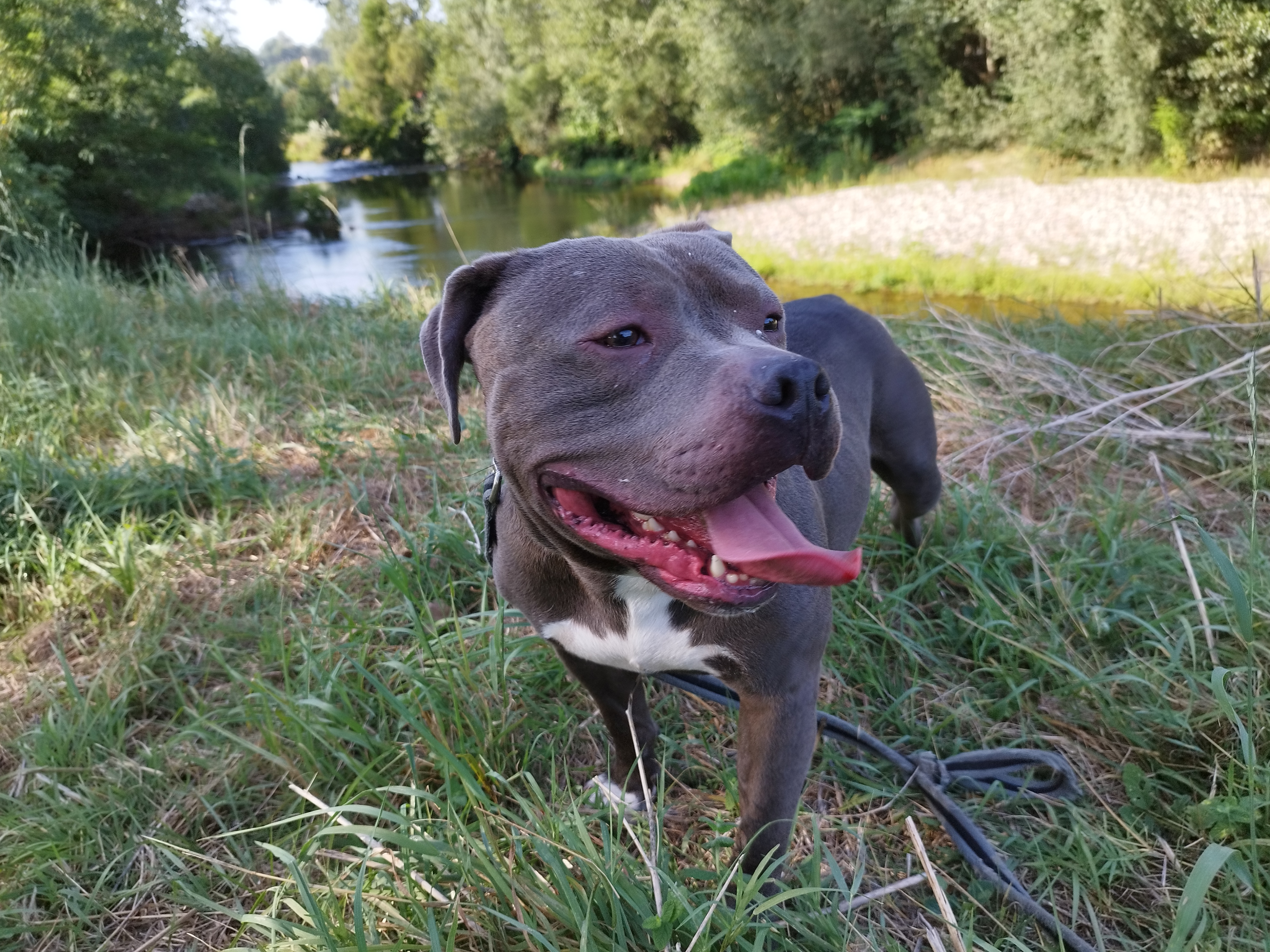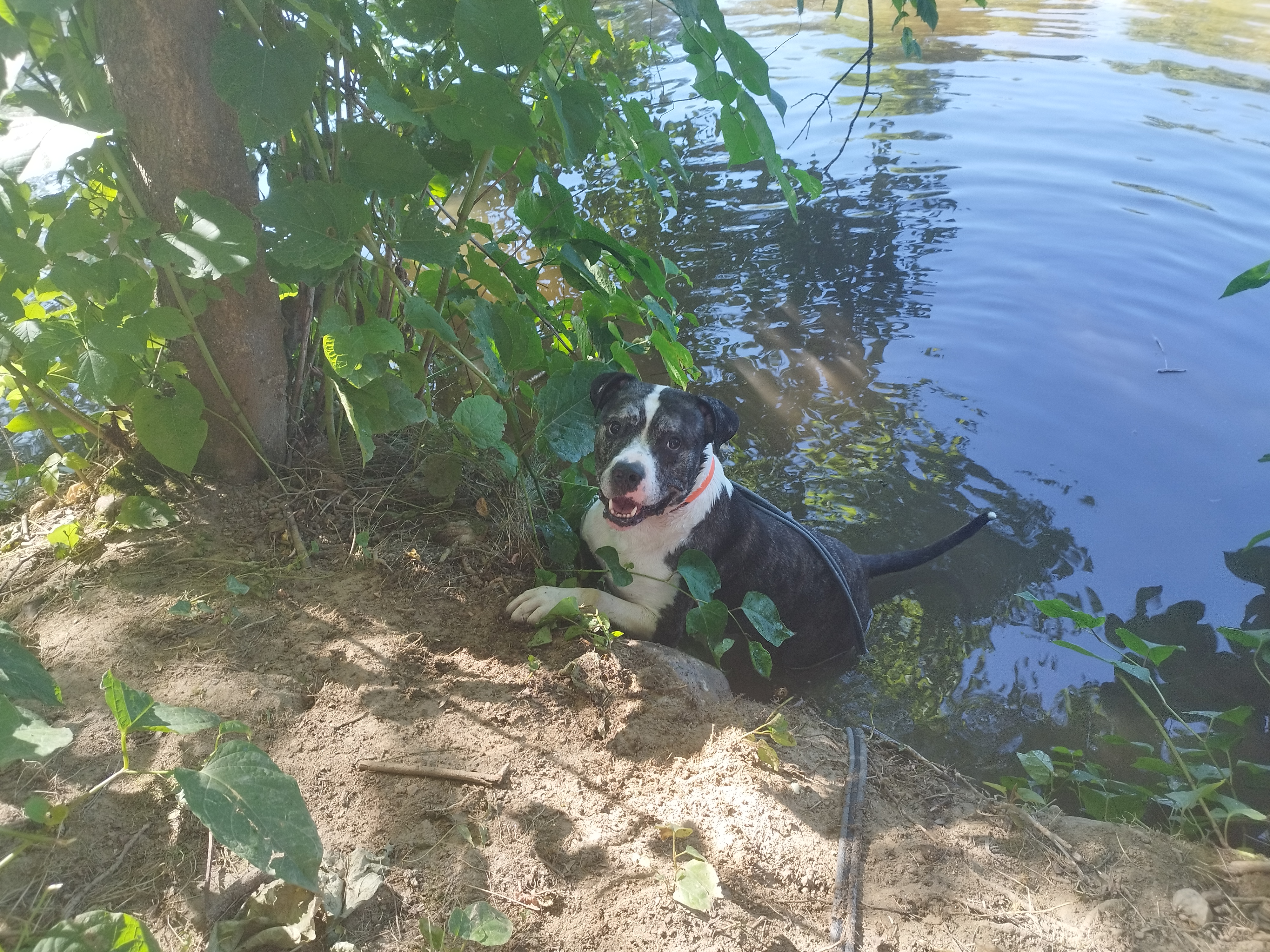 Shaman (né en 2023) est un chien puissant de 2 ans, de taille moyenne, croisé American Bully. Il est très proche des humains et aime les caresses. Shaman adore l’eau et il est même difficile de l’en sortir ! Un vrai poisson ! Shaman sera placé dans un foyer sans enfant.