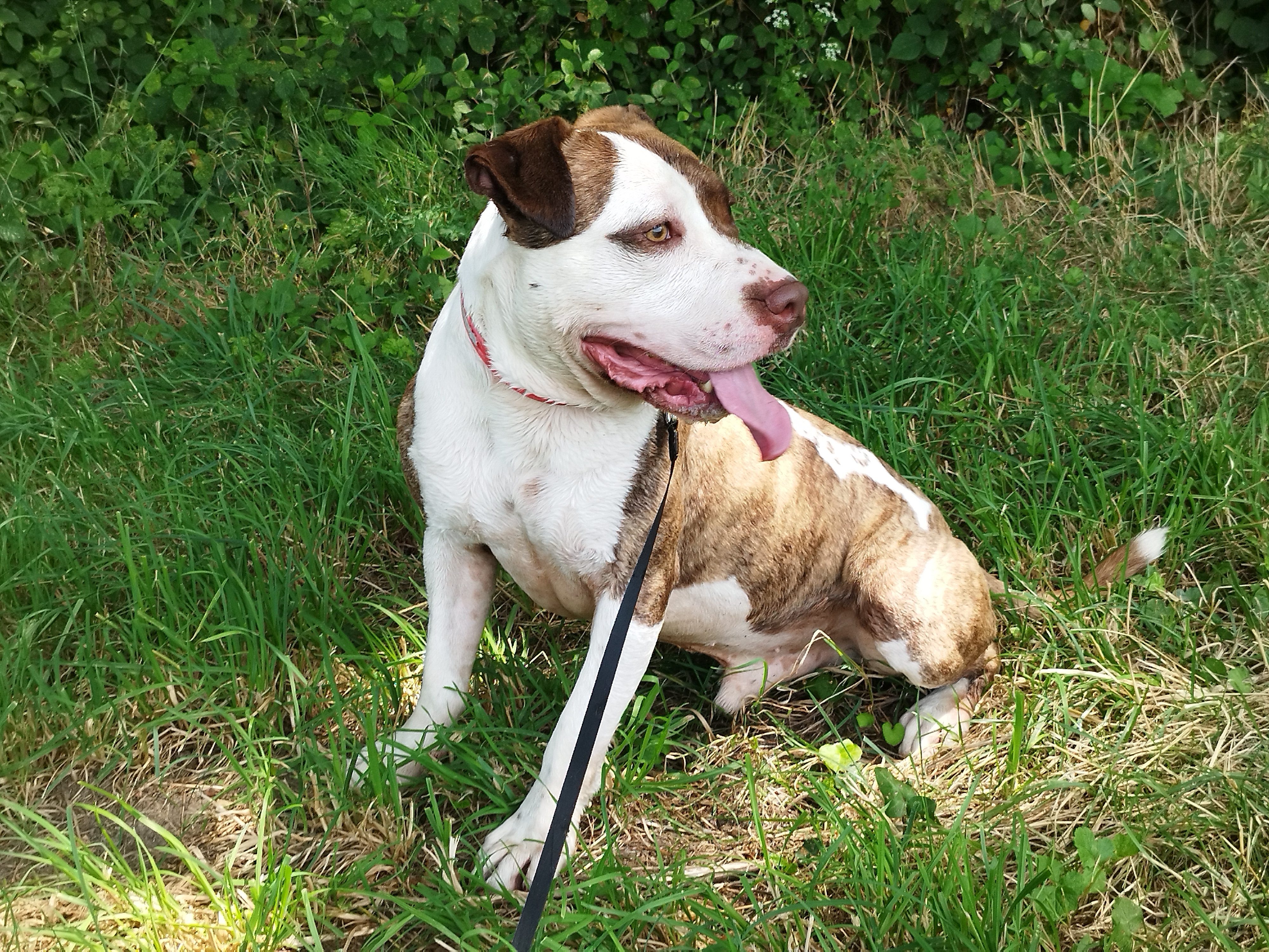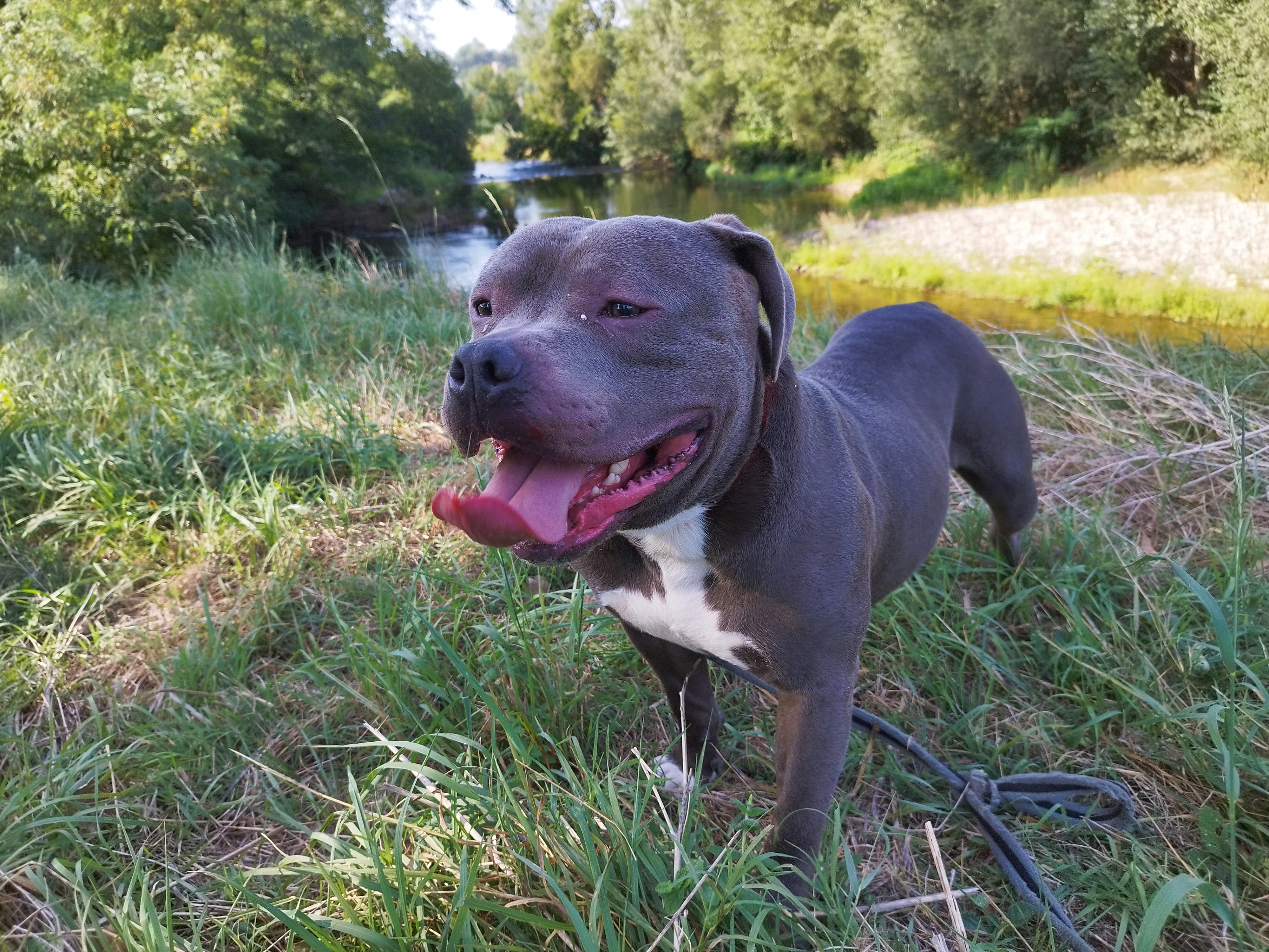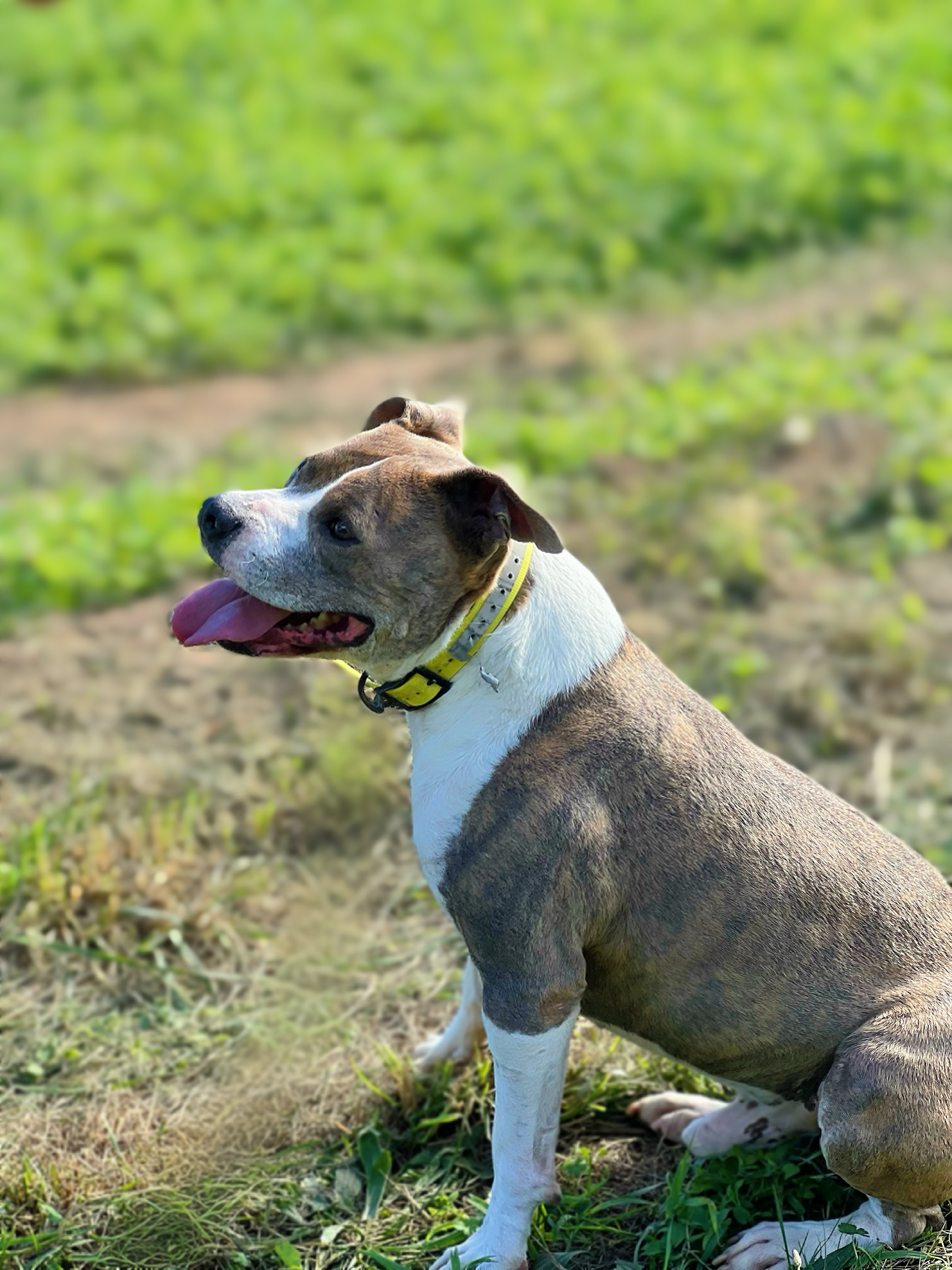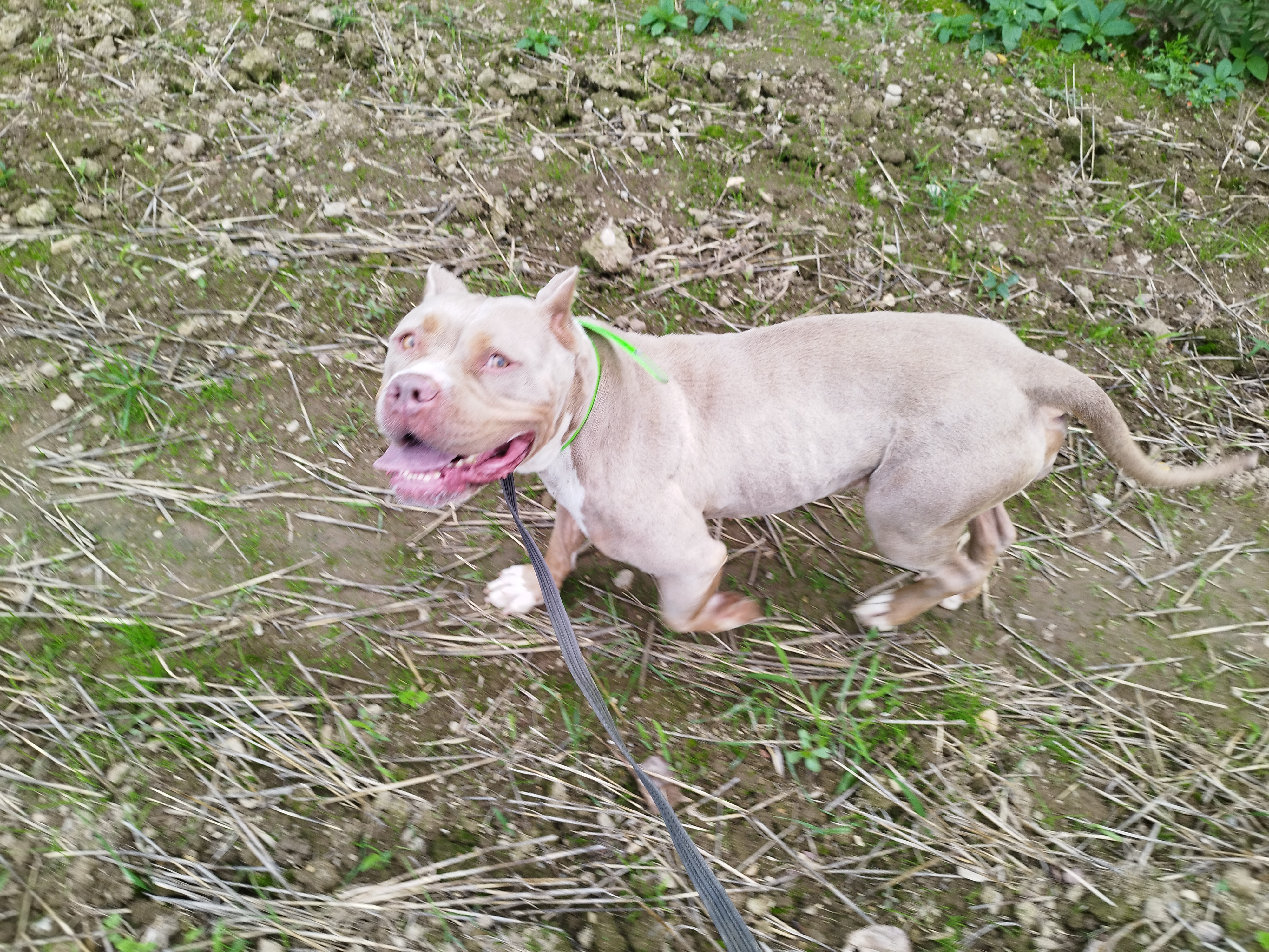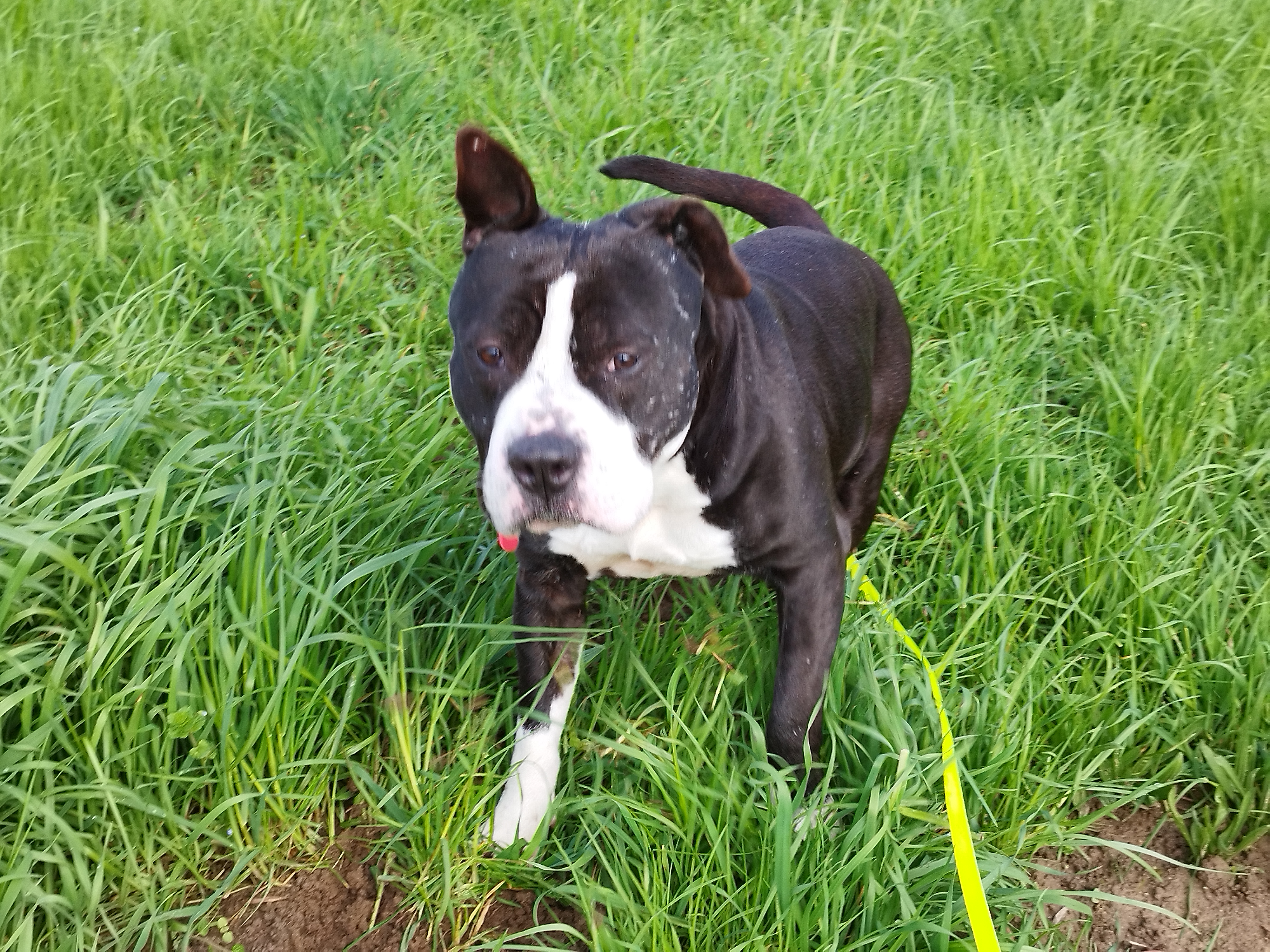 Shaman (né en 2023) est un chien puissant de 2 ans, de taille moyenne, croisé American Bully. Il est très proche des humains et aime les caresses. Shaman adore l’eau et il est même difficile de l’en sortir ! Un vrai poisson ! Shaman sera placé dans un foyer sans enfant.