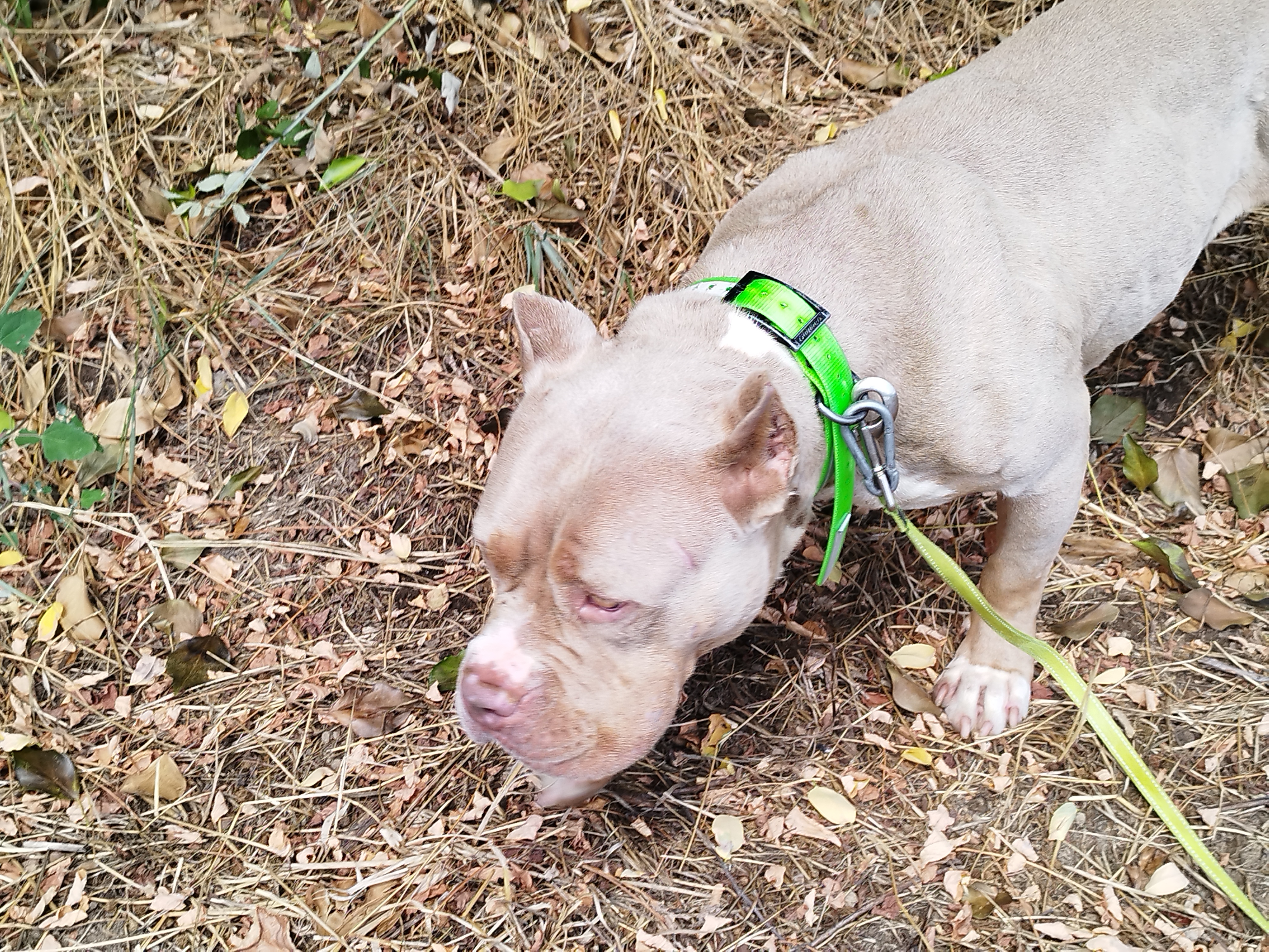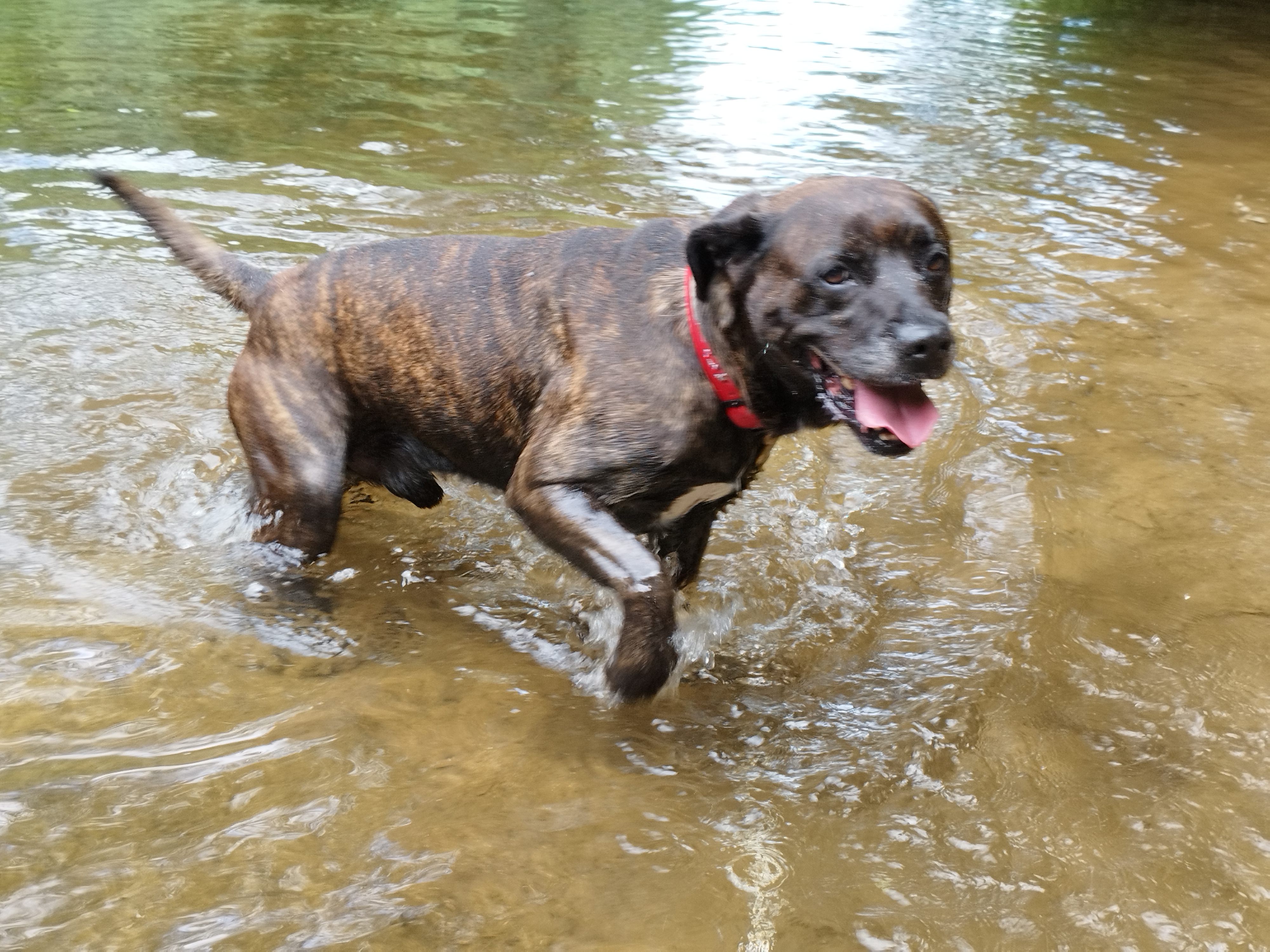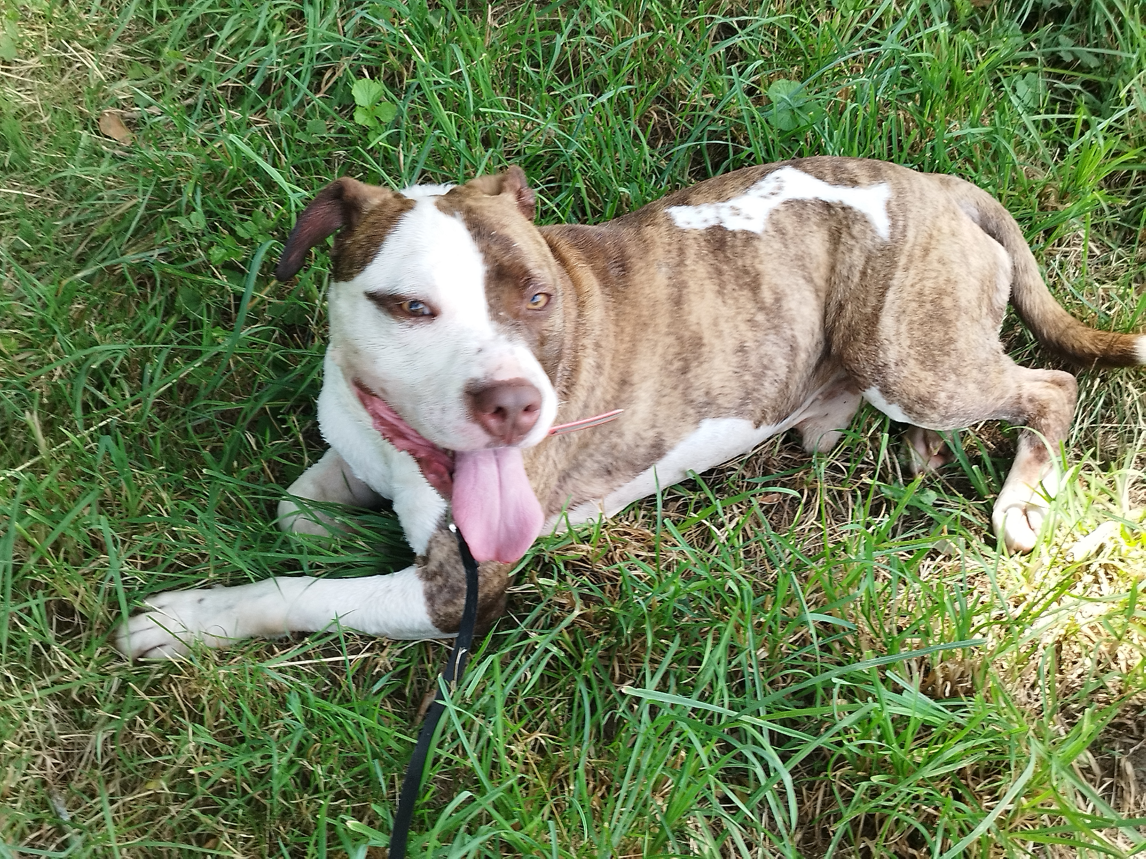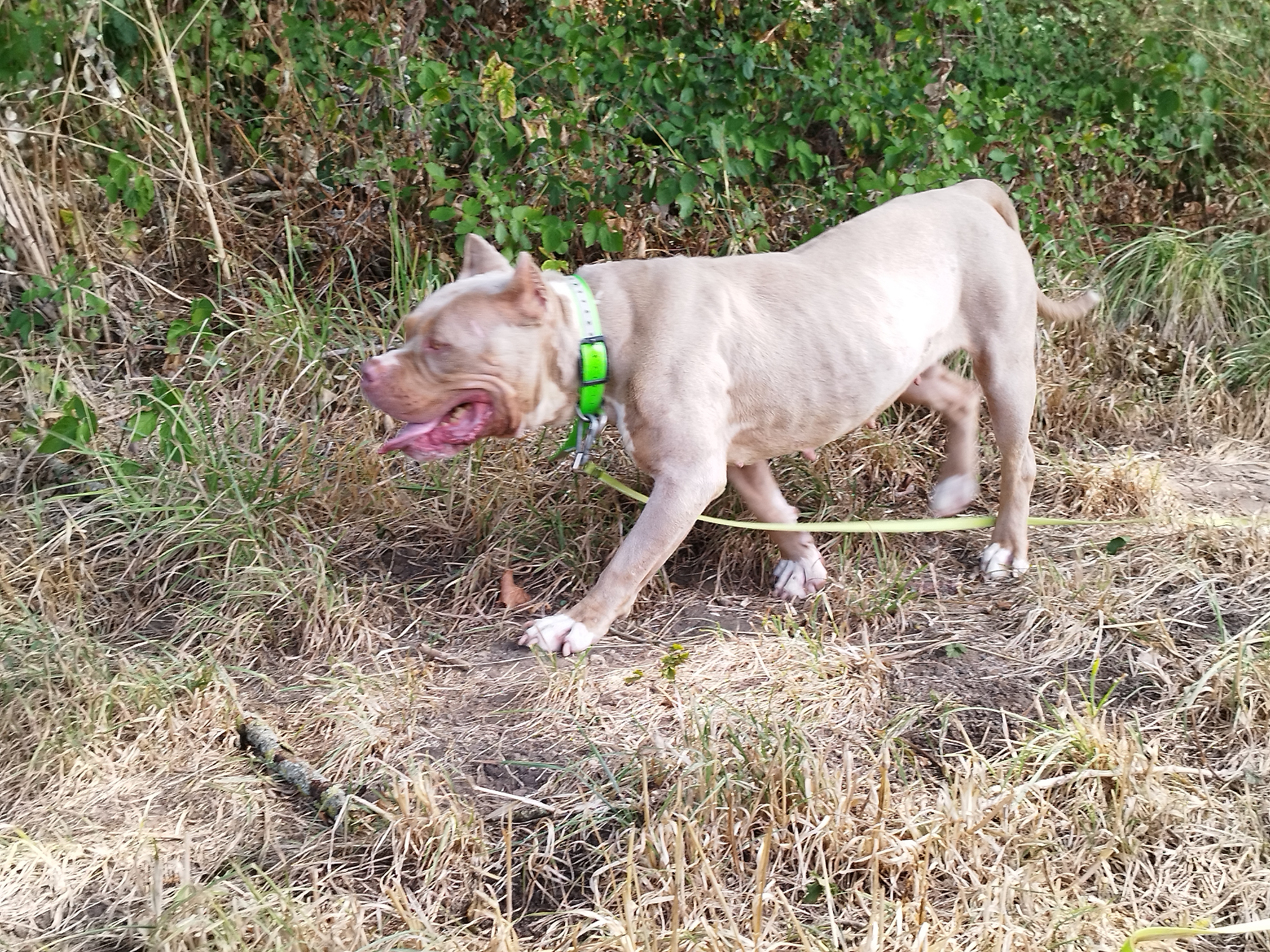 Shaman (né en 2023) est un chien puissant de 2 ans, de taille moyenne, croisé American Bully. Il est très proche des humains et aime les caresses. Shaman adore l’eau et il est même difficile de l’en sortir ! Un vrai poisson ! Shaman sera placé dans un foyer sans enfant.