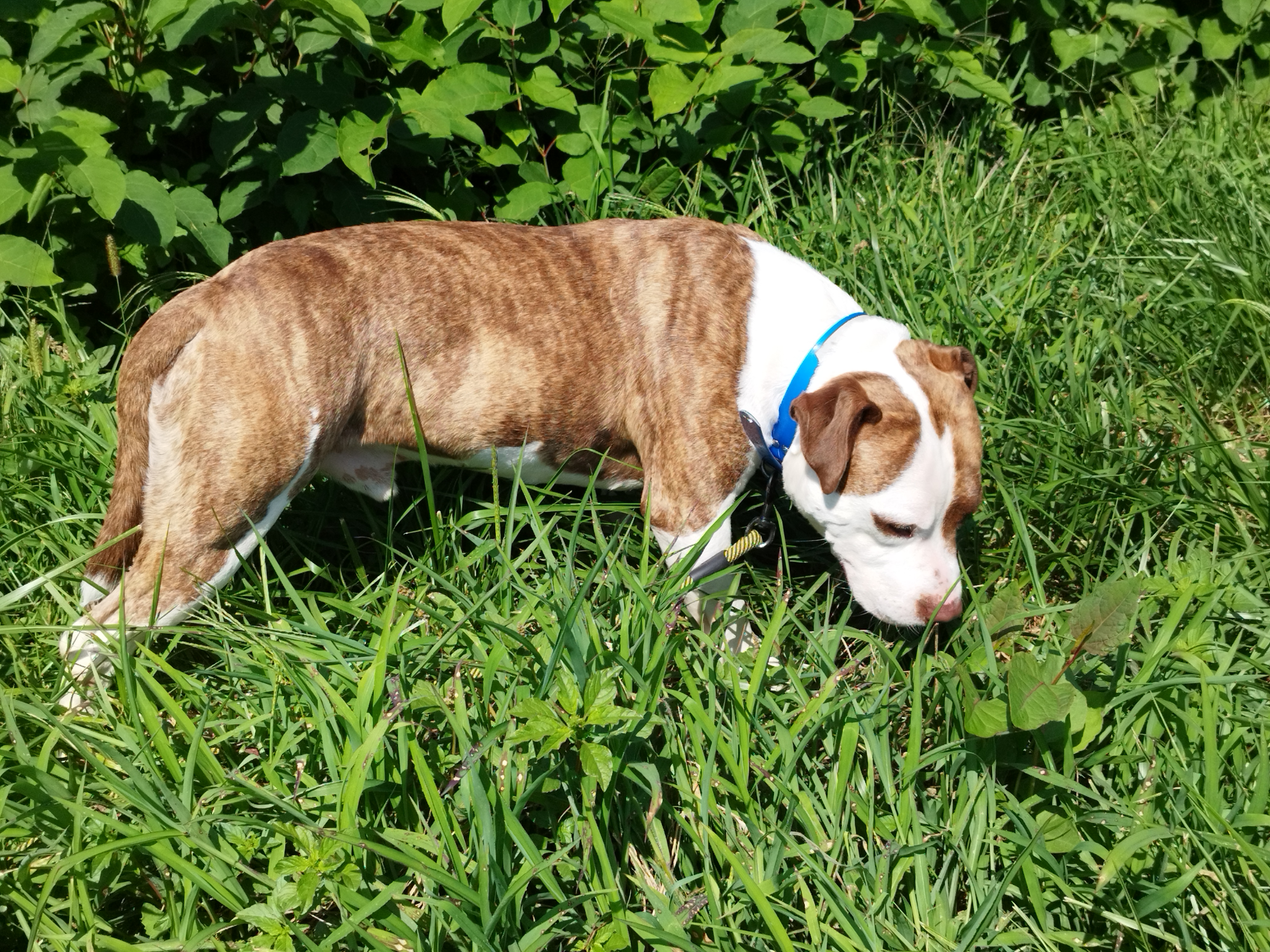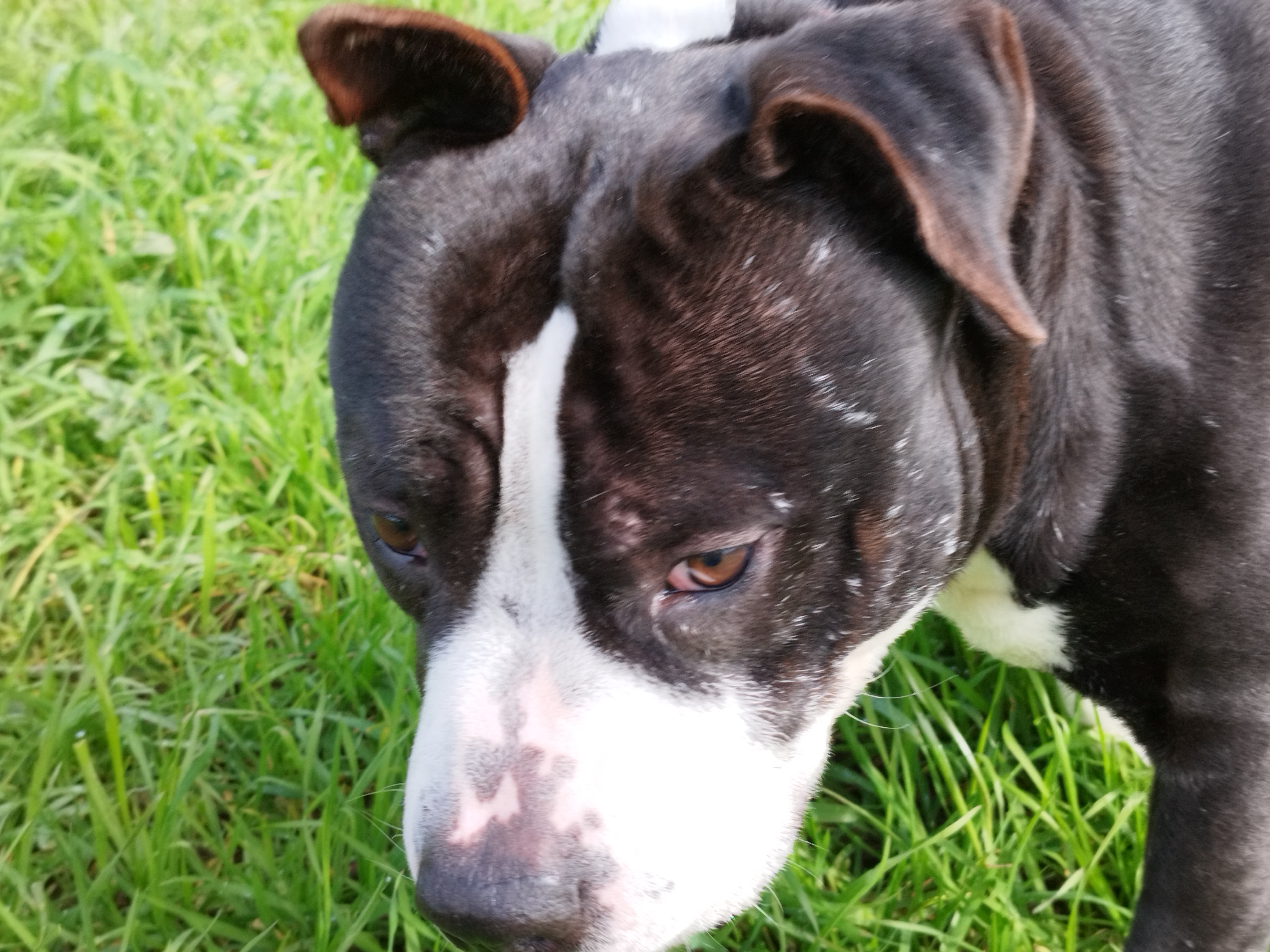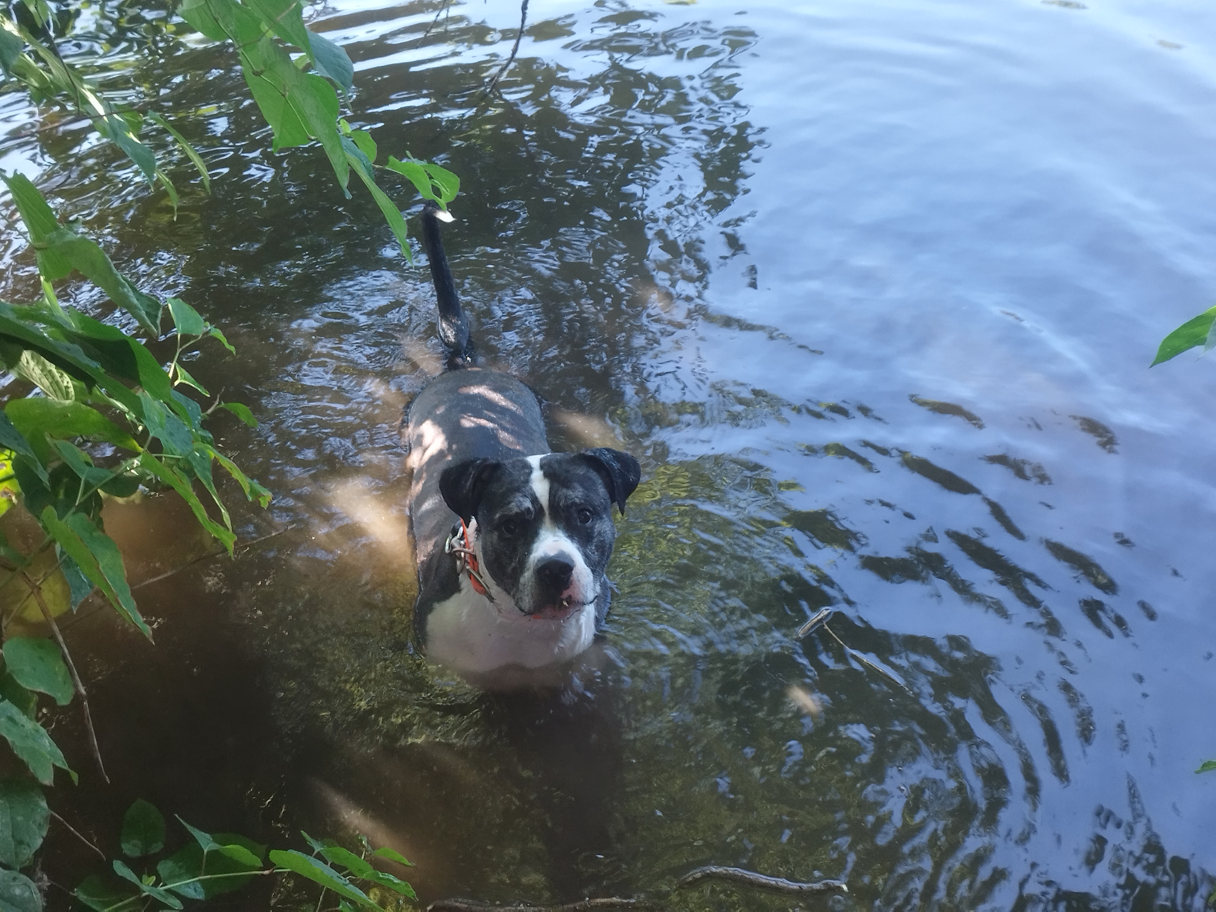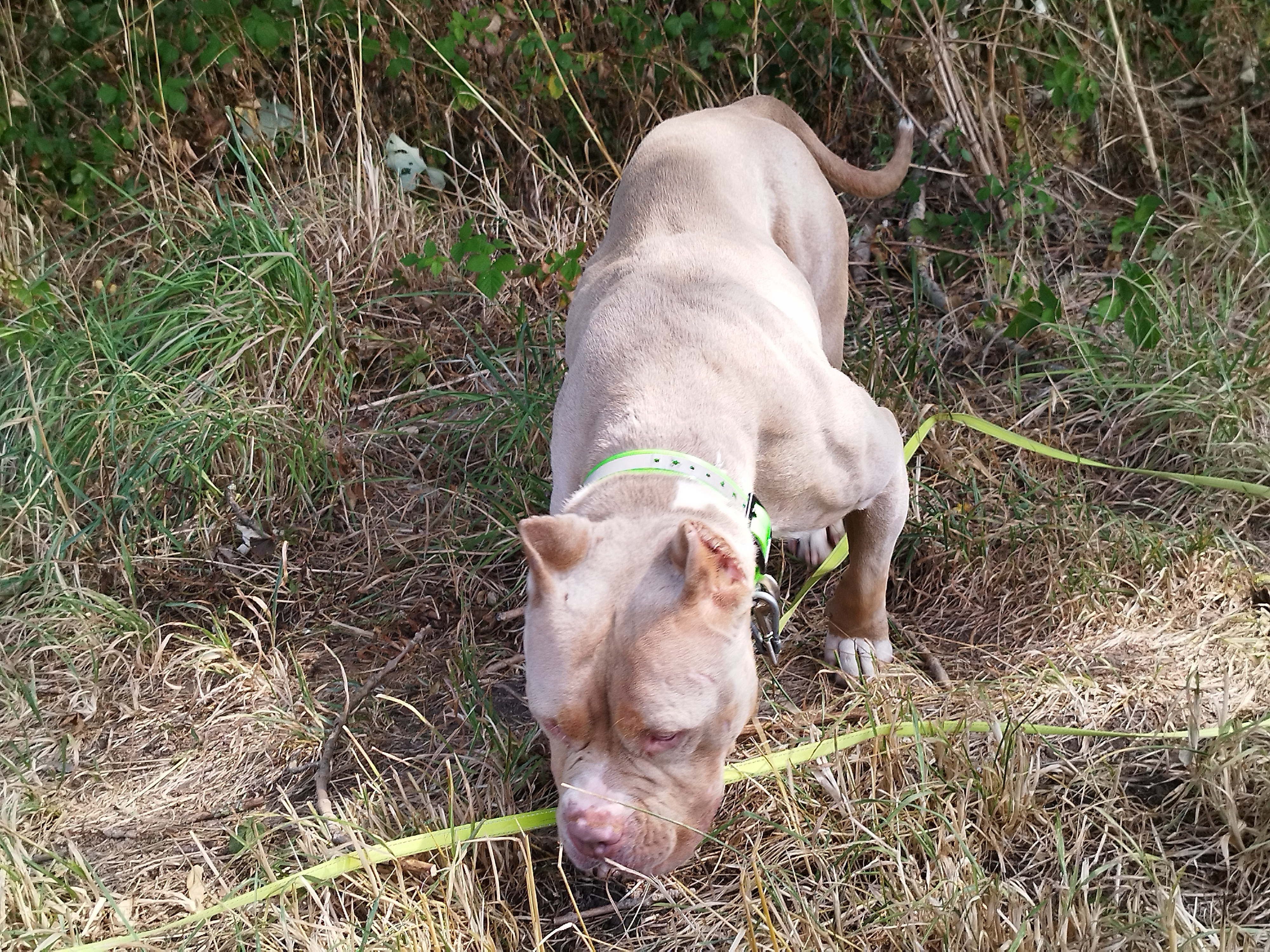 Shaman (né en 2023) est un chien puissant de 2 ans, de taille moyenne, croisé American Bully. Il est très proche des humains et aime les caresses. Shaman adore l’eau et il est même difficile de l’en sortir ! Un vrai poisson ! Shaman sera placé dans un foyer sans enfant.