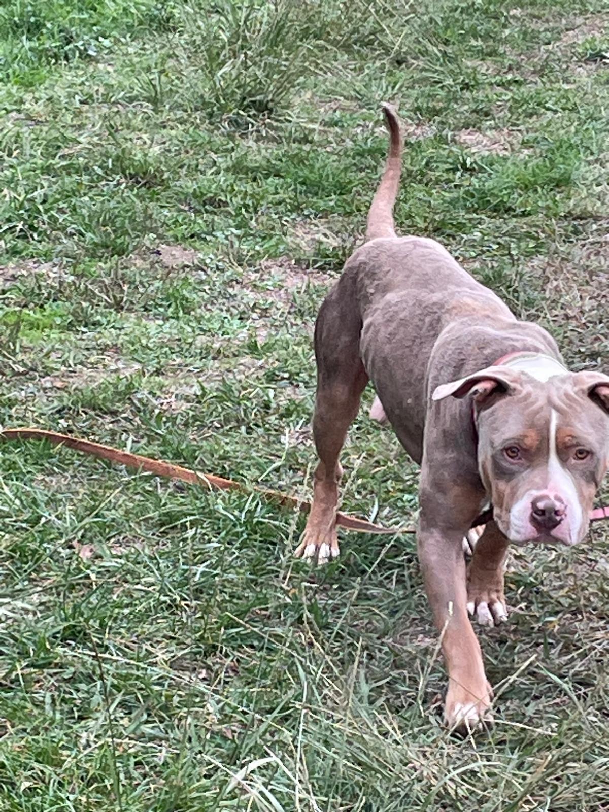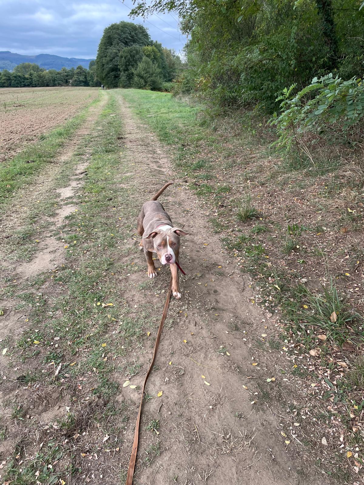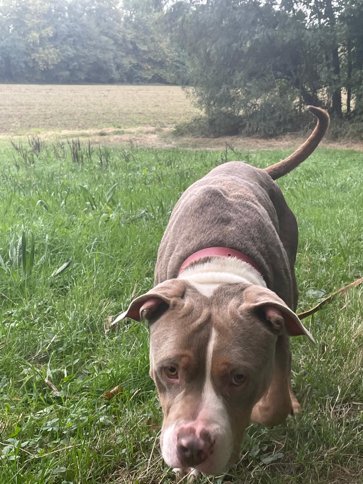 Cristal (née en 2020) est une chienne puissante de 5 ans, croisée American Bully. Elle est très gentille avec les humains. Elle adore les balades et ne tire pas trop ! Elle n’aime pas les autres chiens. Cristal sera placée dans un foyer sans enfant.
