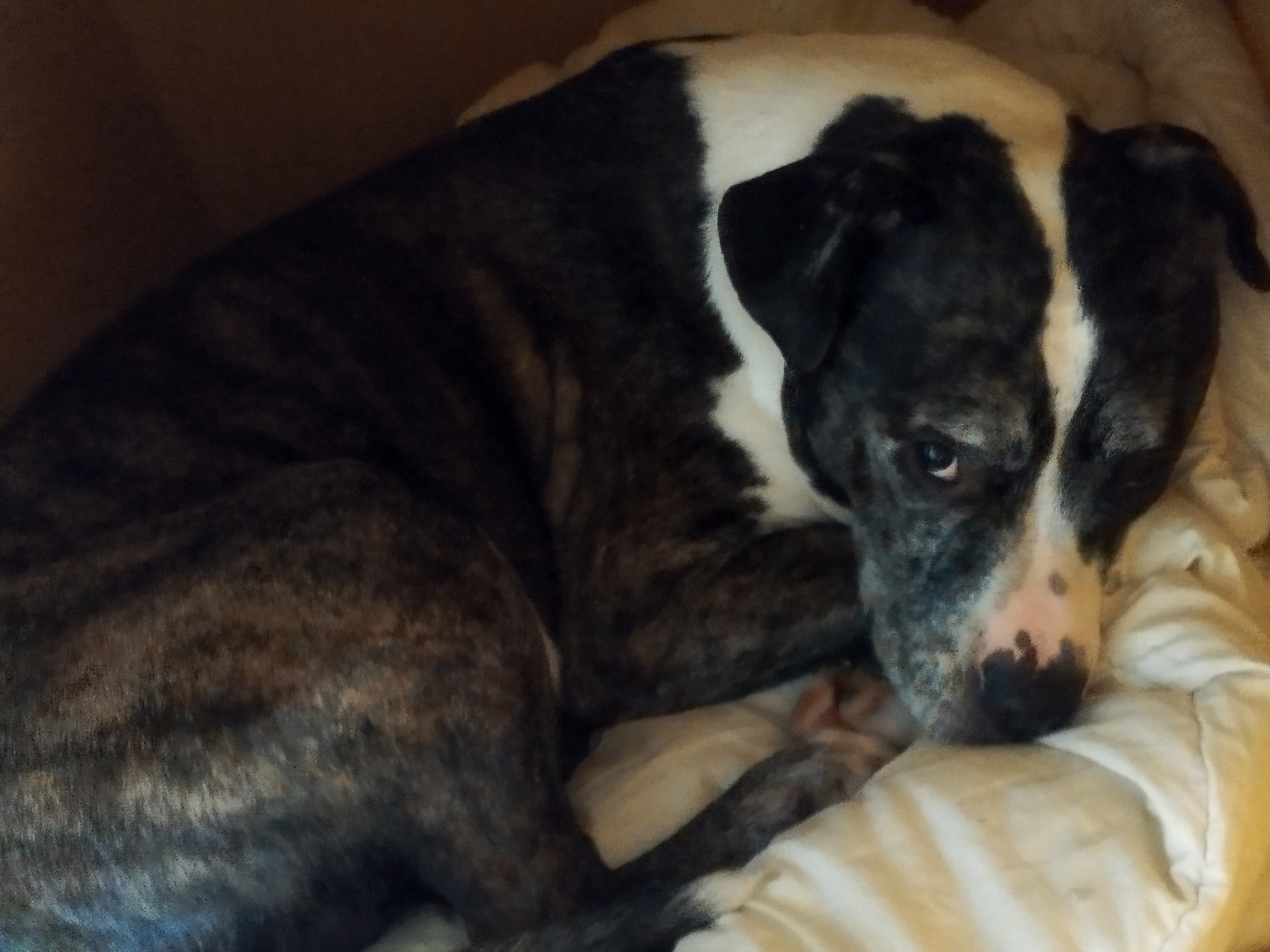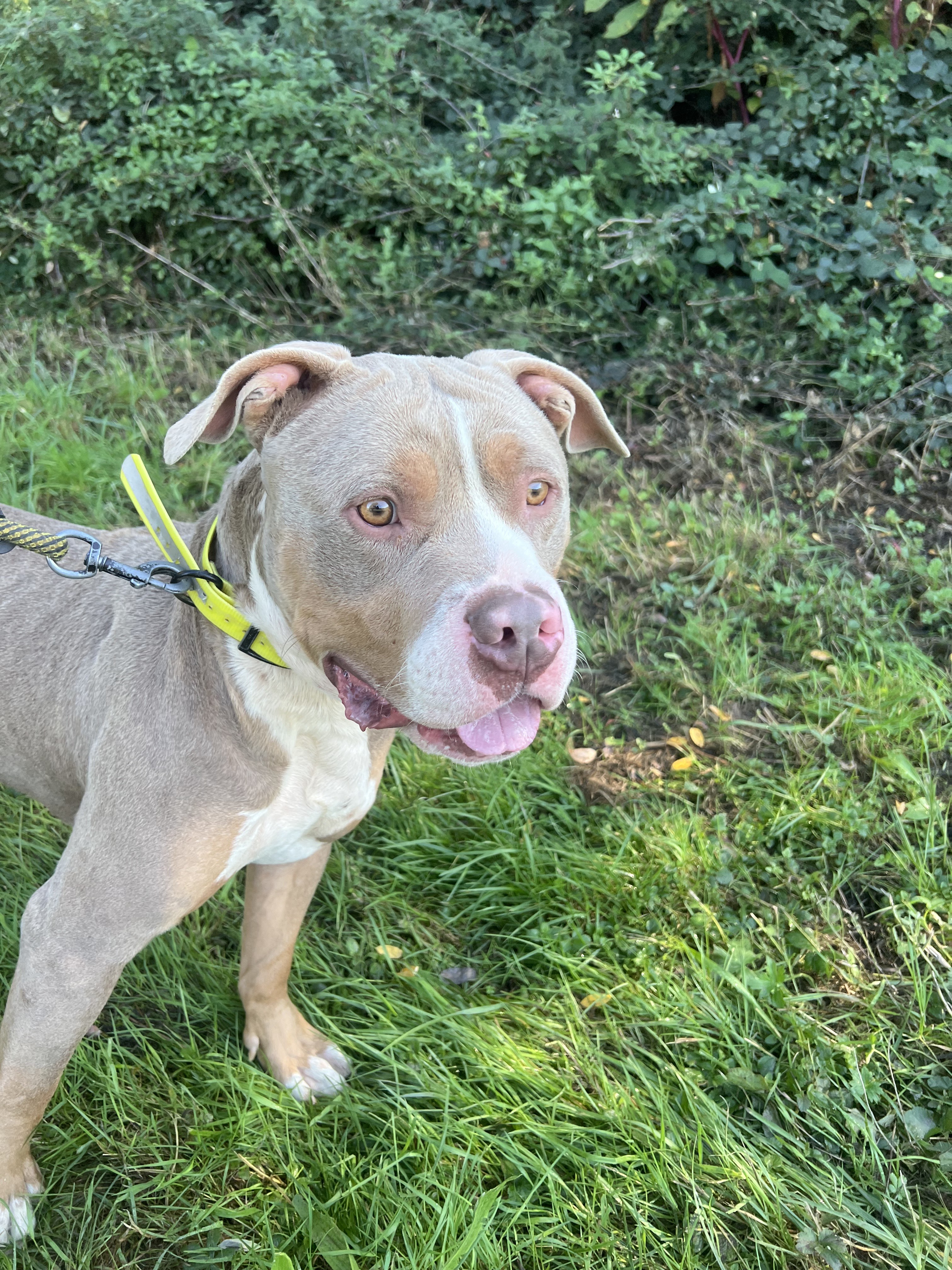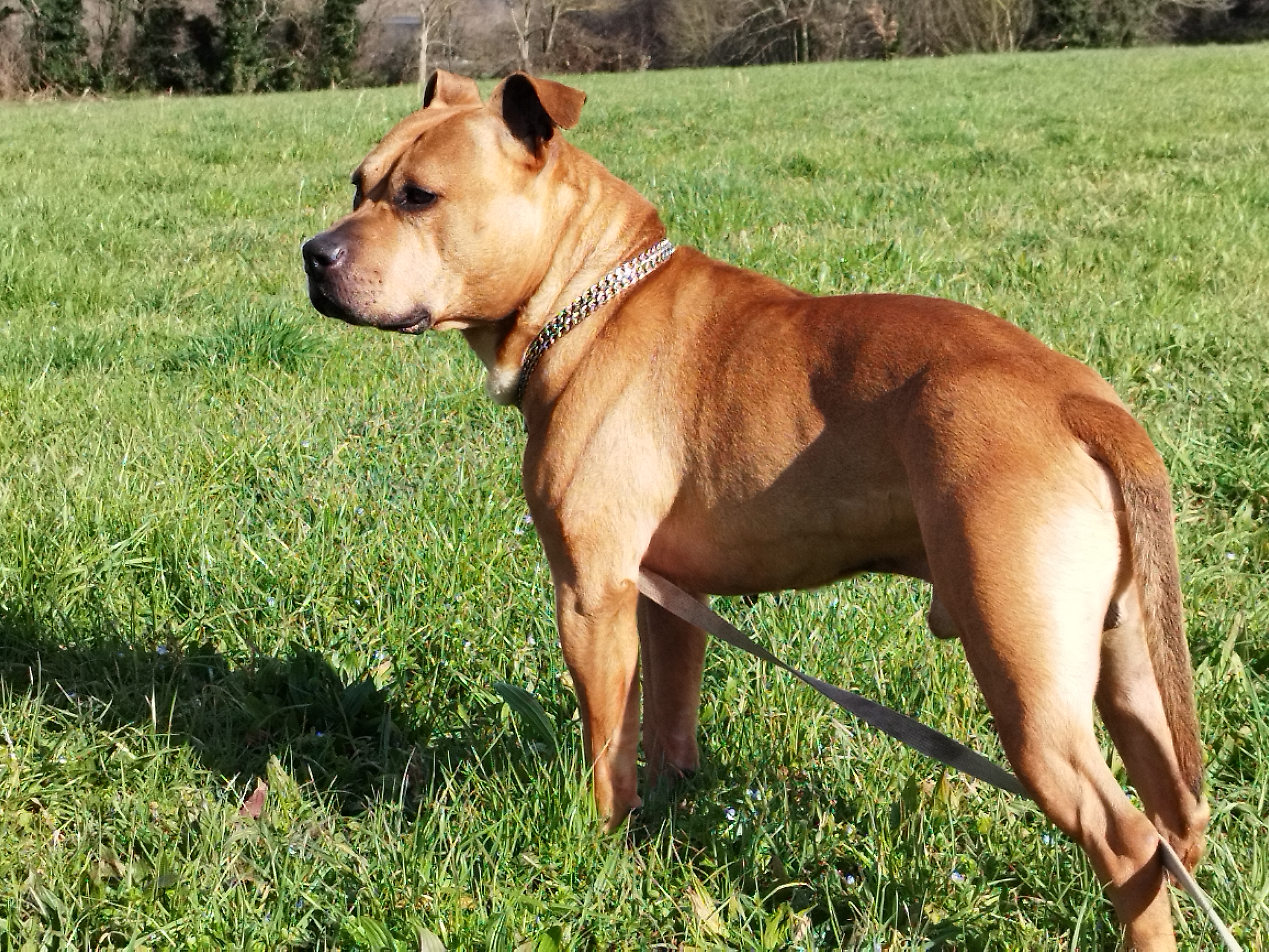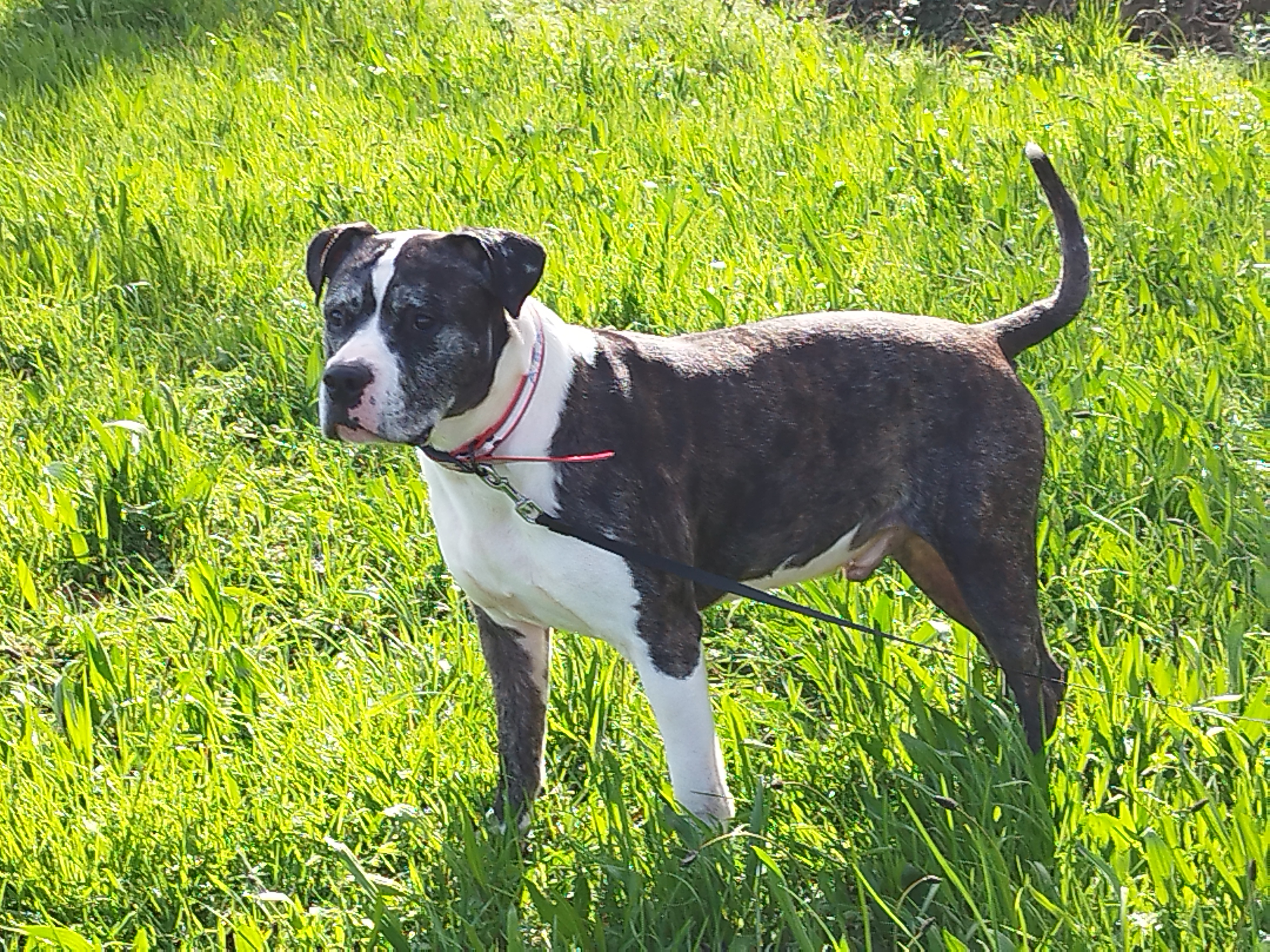 Cristal (née en 2020) est une chienne puissante de 5 ans, croisée American Bully. Elle est très gentille avec les humains. Elle adore les balades et ne tire pas trop ! Elle n’aime pas les autres chiens. Cristal sera placée dans un foyer sans enfant.