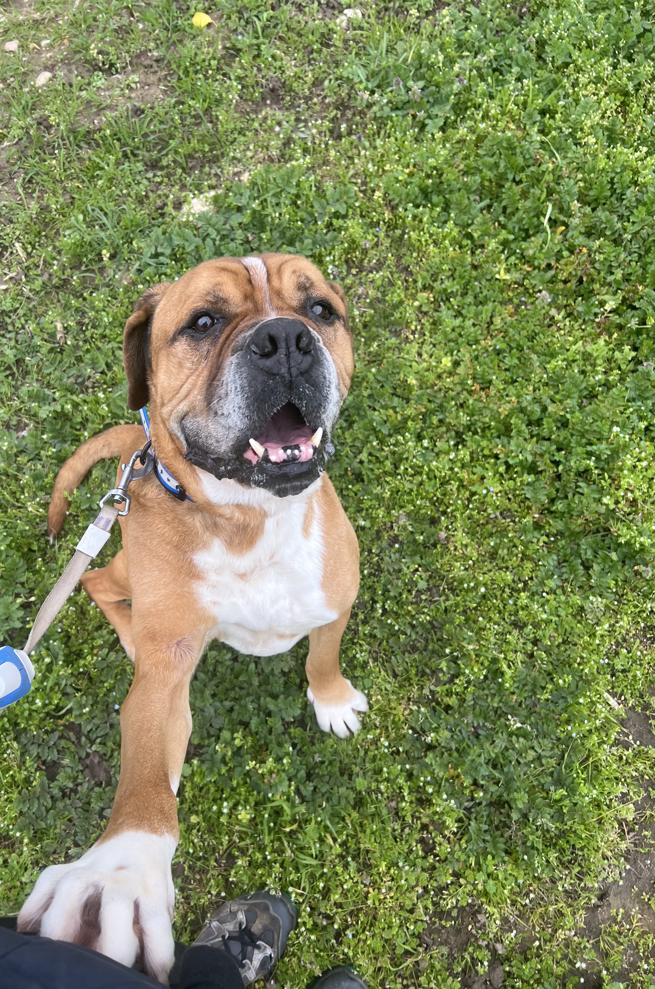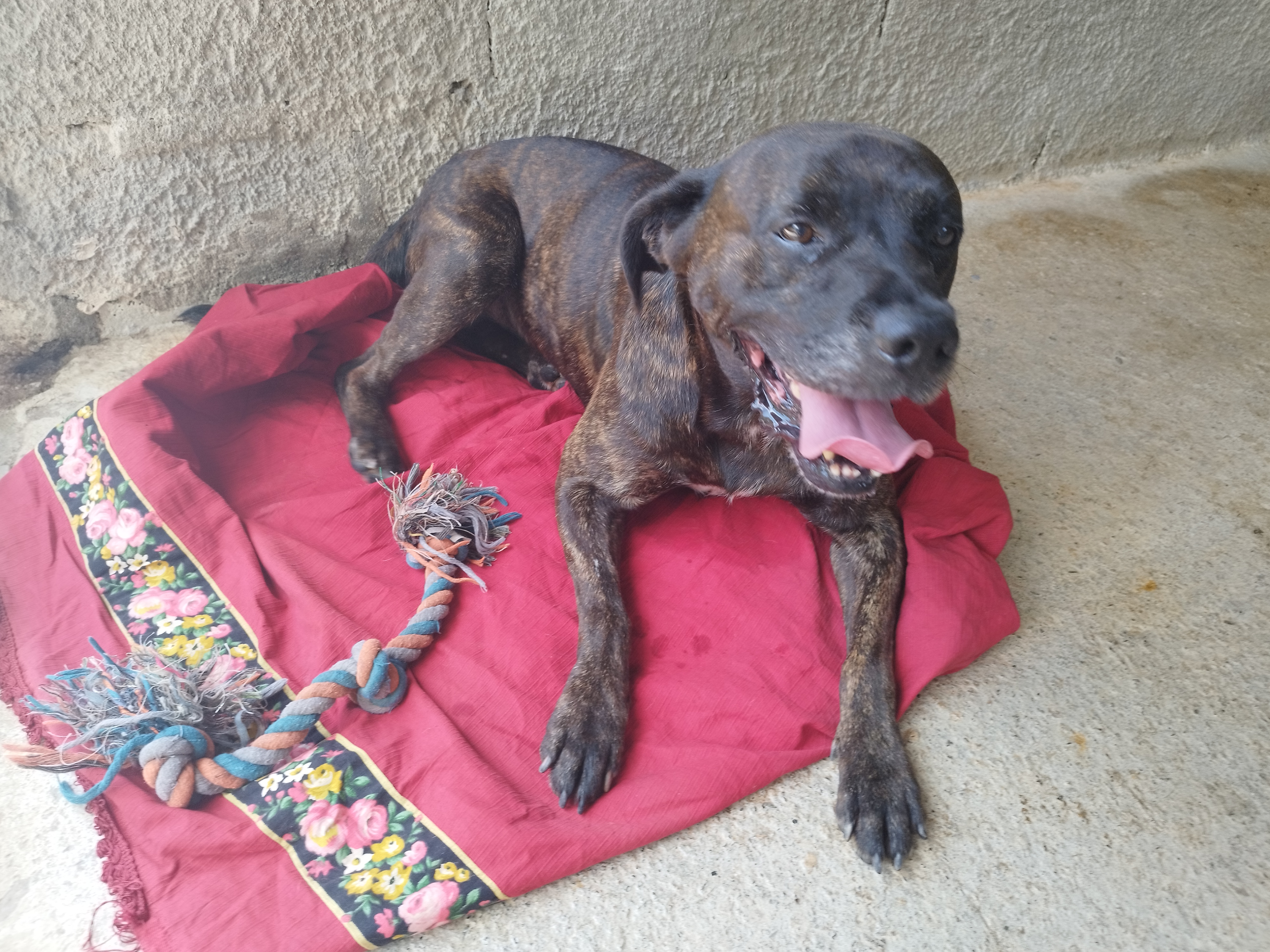 Volt (né en 2024) est un jeune chien de taille moyenne, croisé Cane Corso. Il a été de nouveau abandonné et revient au refuge pour des raisons familiales… Volt est très affectueux et attachant. Il a besoin de se dépenser et il lui faudra un jardin. Il s’entend avec ses congénères mais il peut se montrer, parfois, un peu dominant. Volt s’entend aussi avec les chats. Volt désespère se trouver, enfin, SA famille pour la vie !