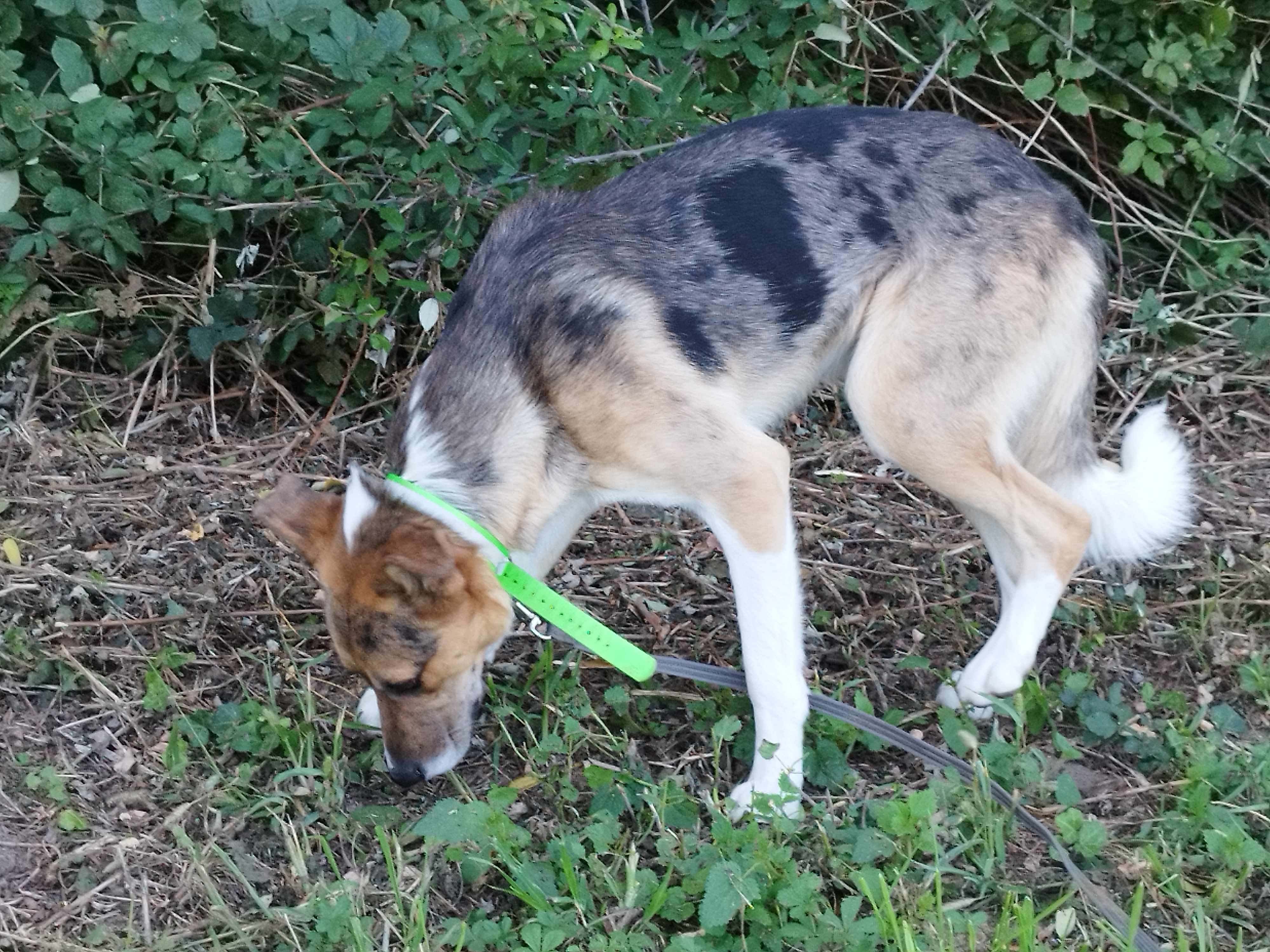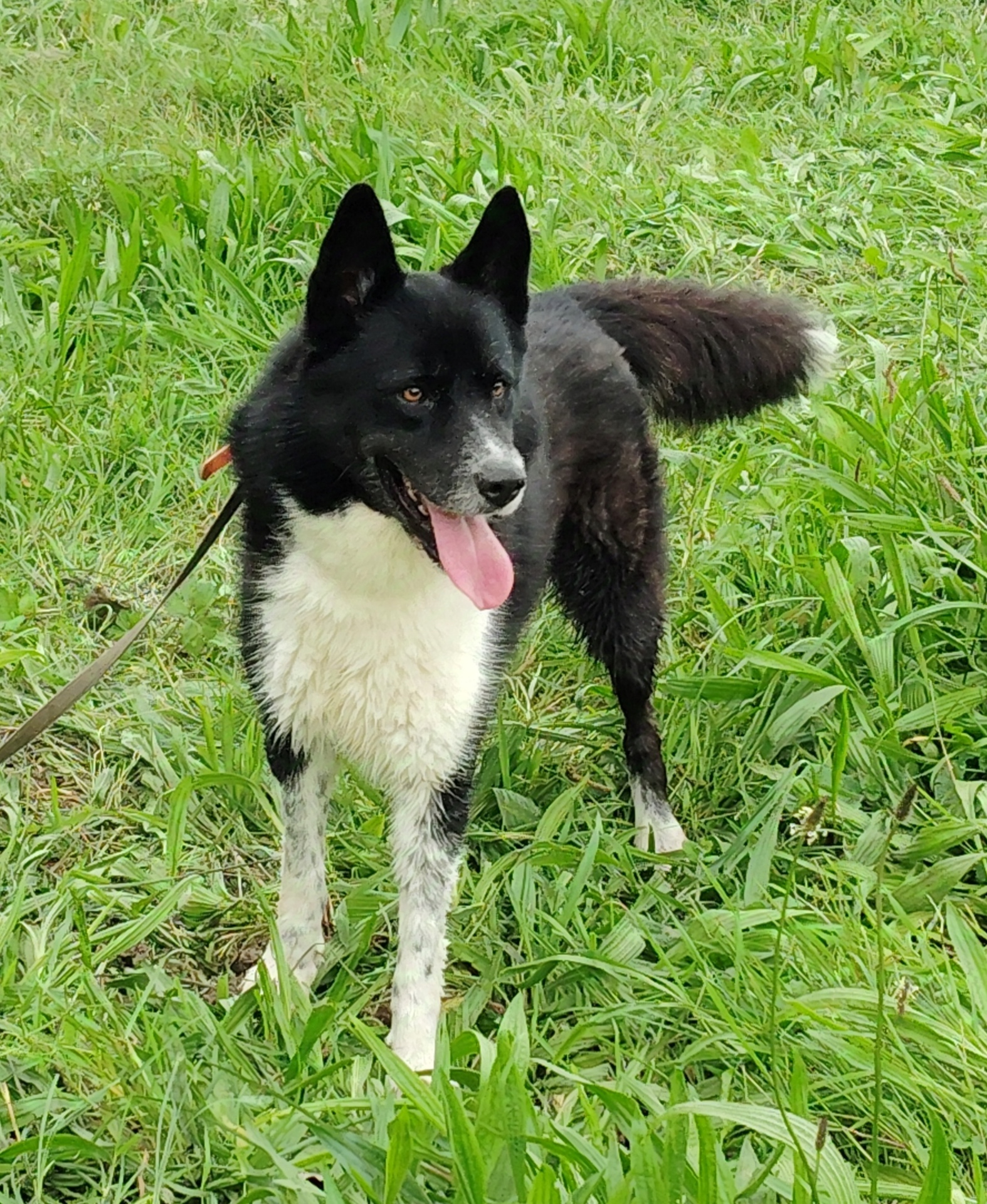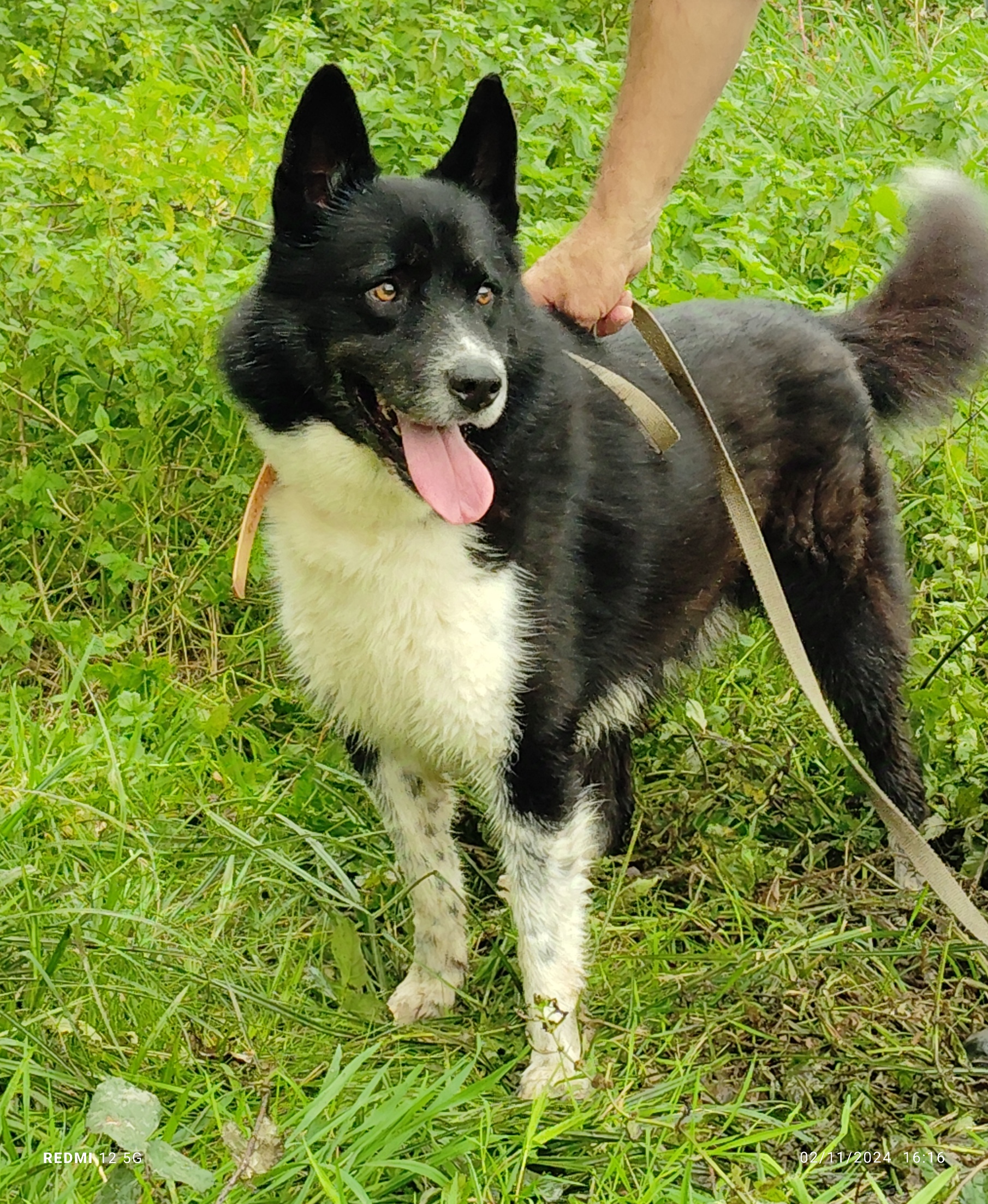 Cookaï (5 ans en 2025) est un croisé Chien d’ours de Carélie. C’est une race de chien originaire de Finlande, créée pour travailler et chasser le gros gibier comme l’ours et l’élan. Cookaï est un chien de taille moyenne, robuste, vigoureux et dynamique. Pendant les promenades, Cookaï est très intéressé par les odeurs et la découverte de son environnement. Il a des bases d’éducation et ne demande qu’à progresser. Cookaï sera heureux et câlin dans une maison avec un jardin bien clôturé (2 mètres de hauteur) tout en bénéficiant de longues sorties quotidiennes en pleine nature et éventuellement avec d’autres activités sportives.