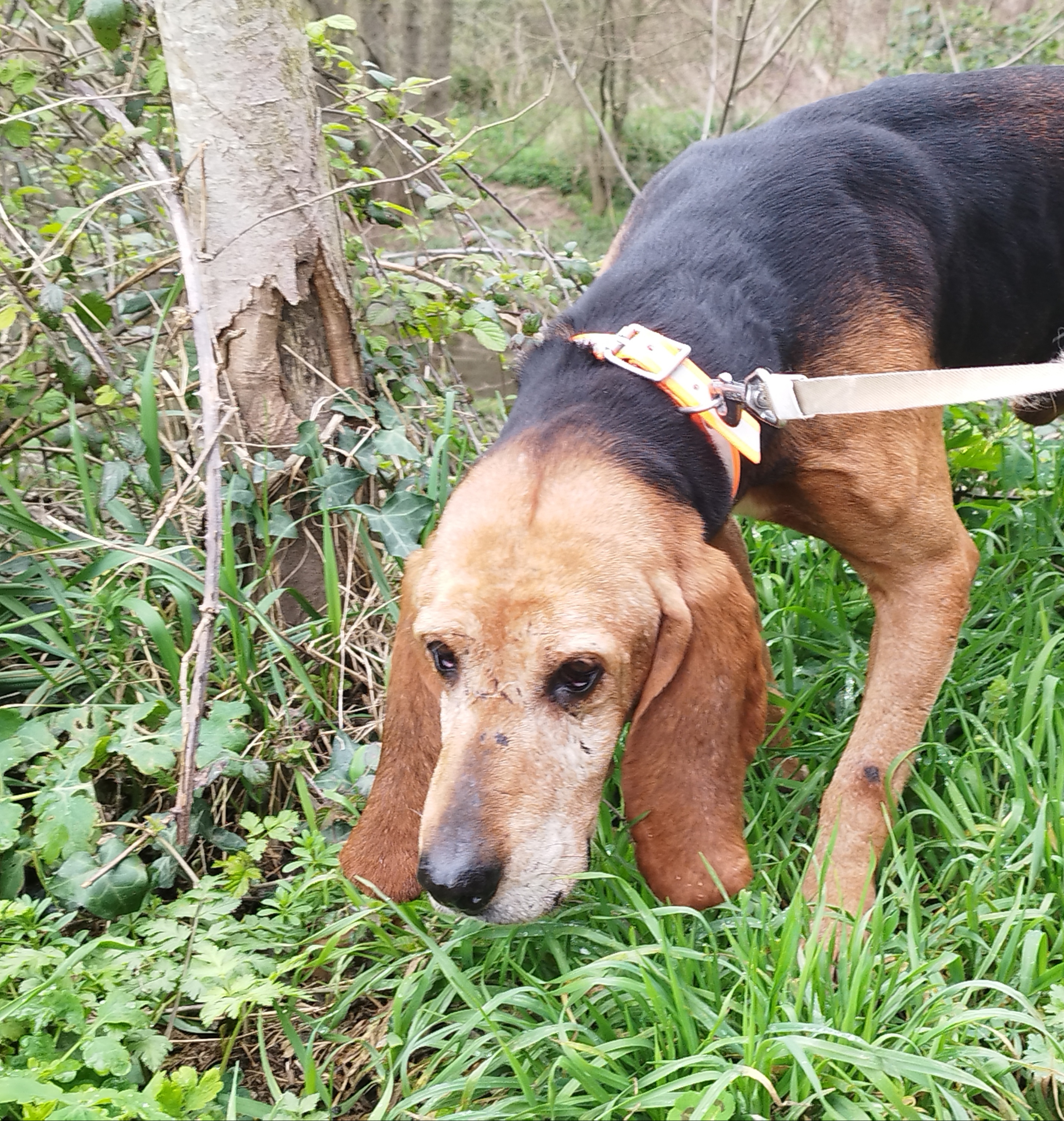 Saxo a joué de malchance pour son sixième anniversaire et son avenir s’est assombrit : son maître chéri vient de décéder et sa maîtresse n’est pas en mesure de s’occuper de lui… Saxo a été adopté chiot au refuge, il y a bientôt 6 ans. C’est un chien très affectueux qui a eu une belle vie de famille jusqu’à présent : balade dans les champs, en liberté (il répond au rappel), friandises à la maison, papouilles, câlins, farniente dans le jardin… Saxo est très gentil et respecte la fragilité des humains : il était très vif avec son maître qui était en pleine forme et très doux avec sa maîtresse qui avait des problèmes de santé. Il s’entendait bien avec le chat de la maison qu’il connaissait depuis son plus jeune âge. Il n’est pas forcément OK avec tous ses congénères. Il ne connaît pas la laisse qu’il découvre au refuge, pour les promenades. Saxo est complètement désemparé, lui qui n’a connu que l’amour d’un foyer avec un maître très fusionnel. La vie en box est très angoissante. Saxo attend une nouvelle famille qui saura lui faire oublier son désespoir.