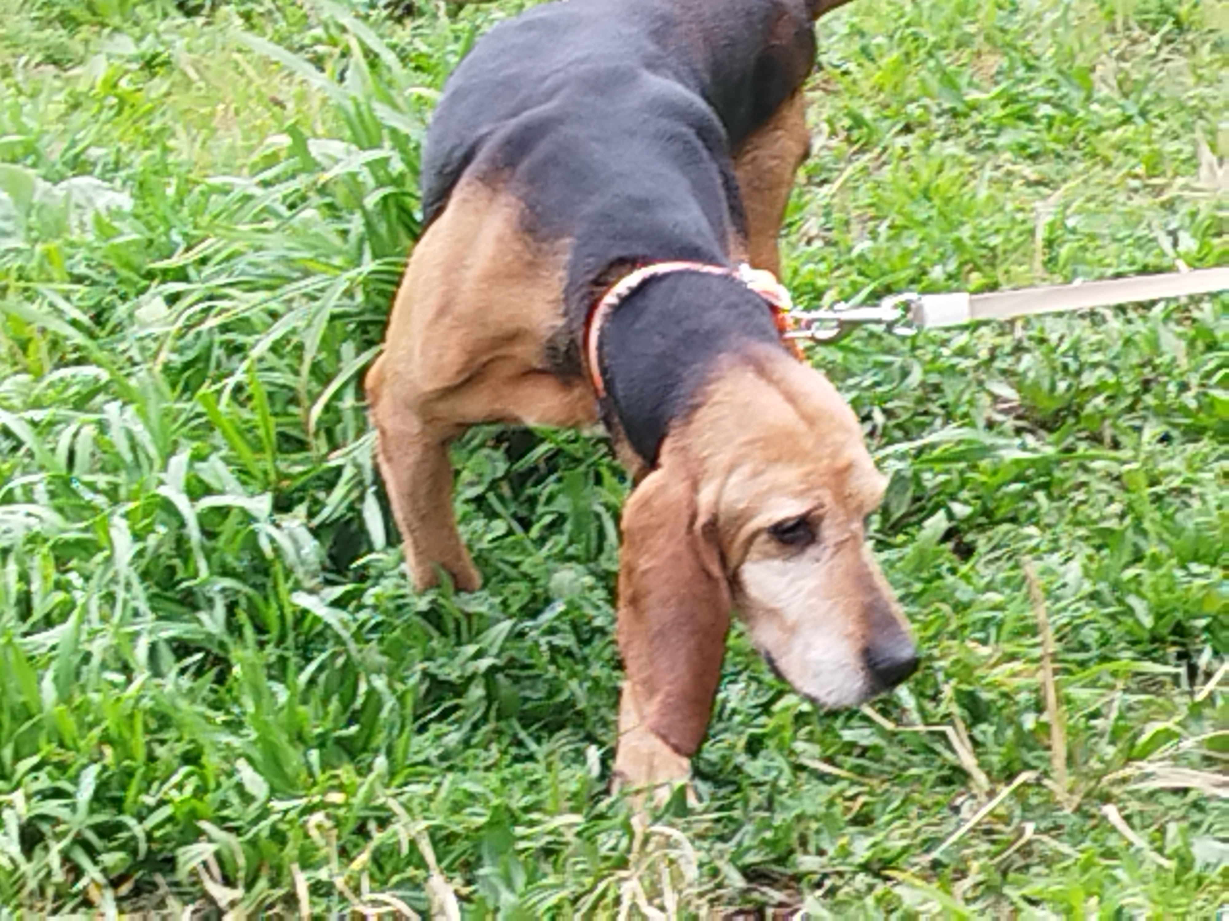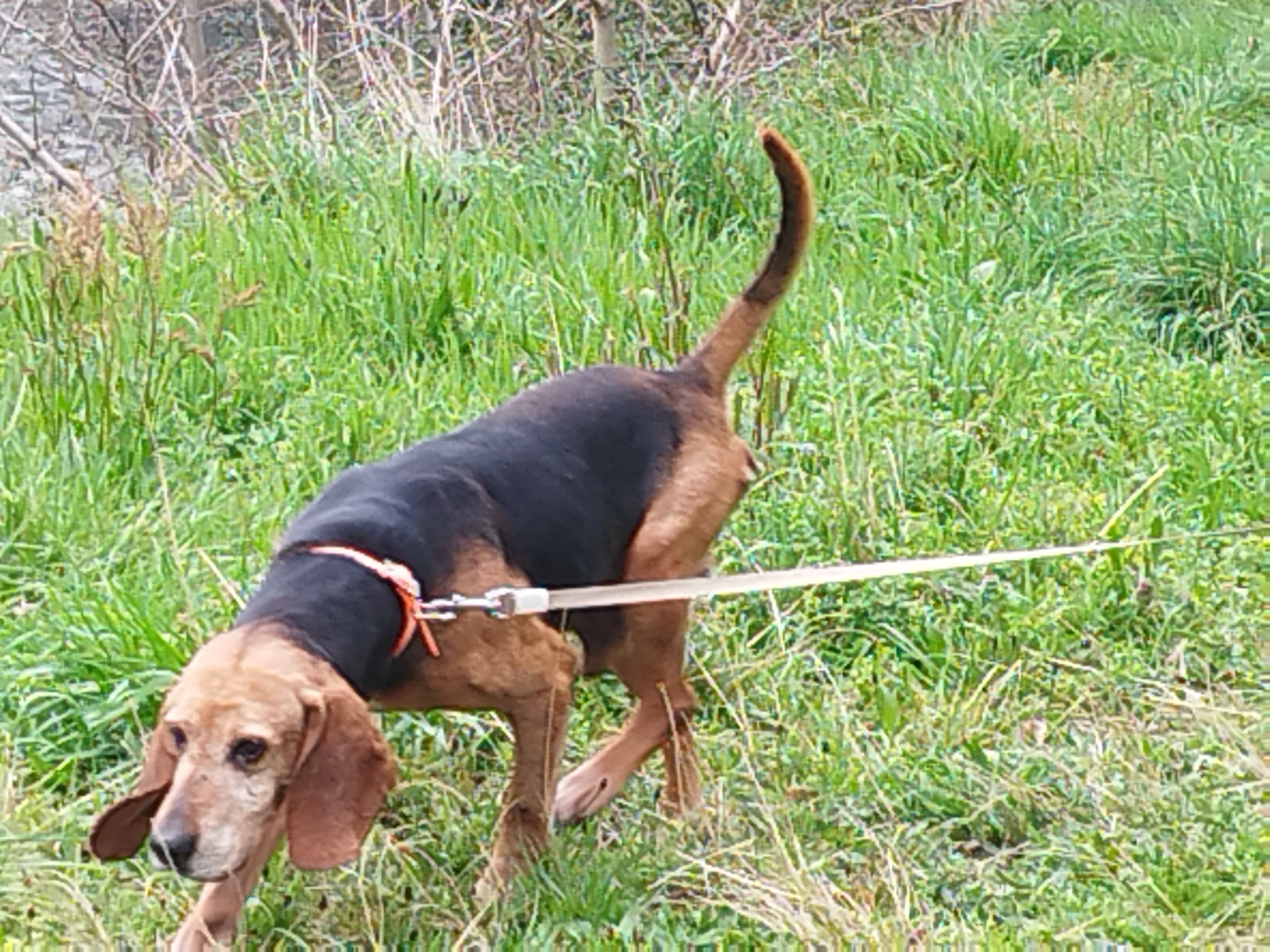 Tiaré (née en 2022) est une chienne de grande taille, de 3 ans environ, croisée chien courant. Tiaré a été trouvée. Elle est très douce, fait plein de câlins et se promène facilement.