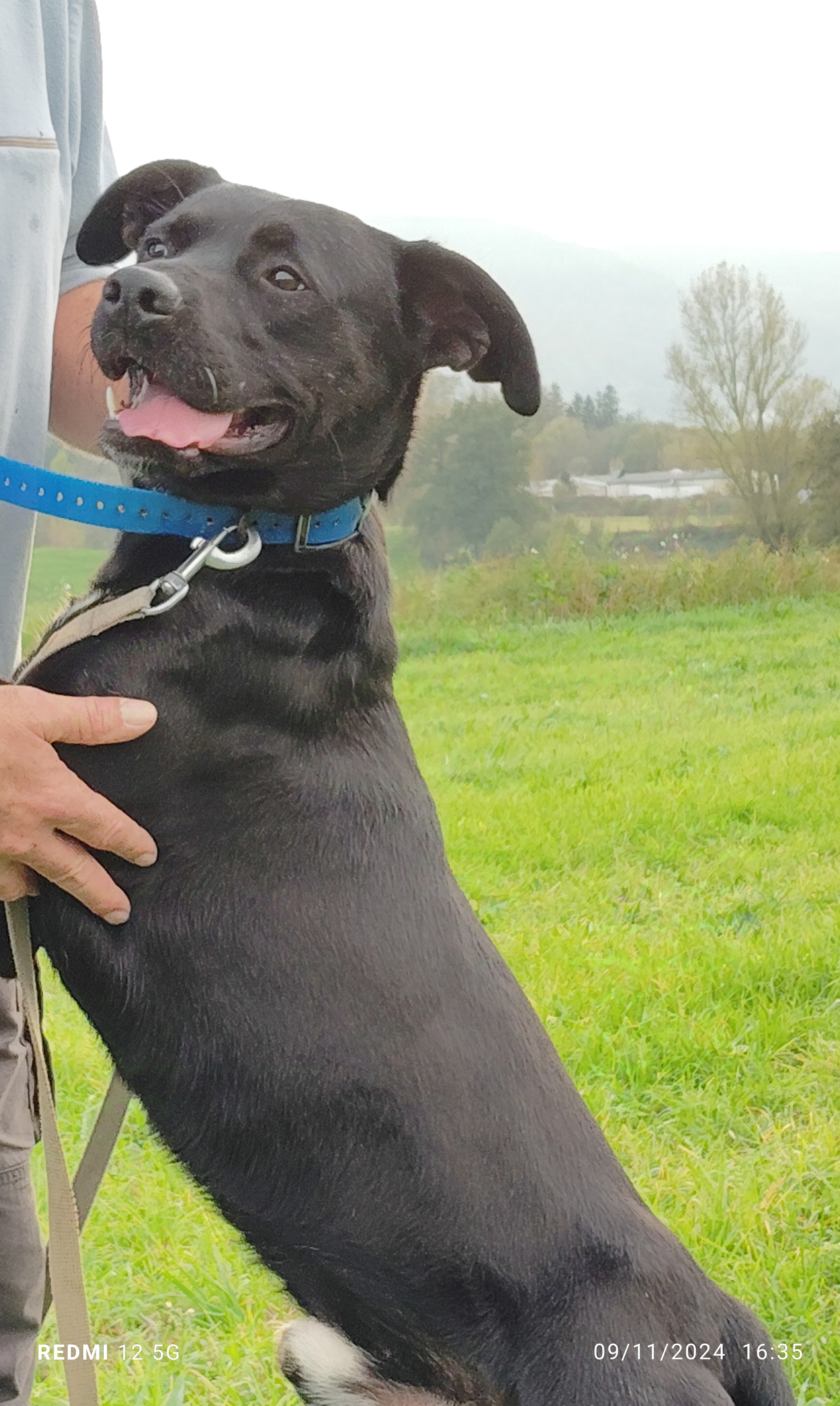Blacky (né en 2023) est un chien de taille moyenne, de 2 ans et demi environ, croisé Berger. Blacky était très peureux et n’est pas sorti de son box pendant longtemps. Avec l’aide de l’éducateur canin Jean-François Holleville, patient et extrêmement bienveillant, Blacky a accepté de quitter le box, pour se promener. Désormais, Blacky se promène comme les autres chiens du refuge, au grand air. Cependant, pour attacher la longe à son collier, il faut encore ruser et lui proposer des friandises… Si vous êtes intéressés par Blacky, il vous faudra beaucoup de patience et de présence avant de pouvoir l’adopter. Mais c’est un loulou qui en vaut la peine : il a tellement d’amour à offrir !