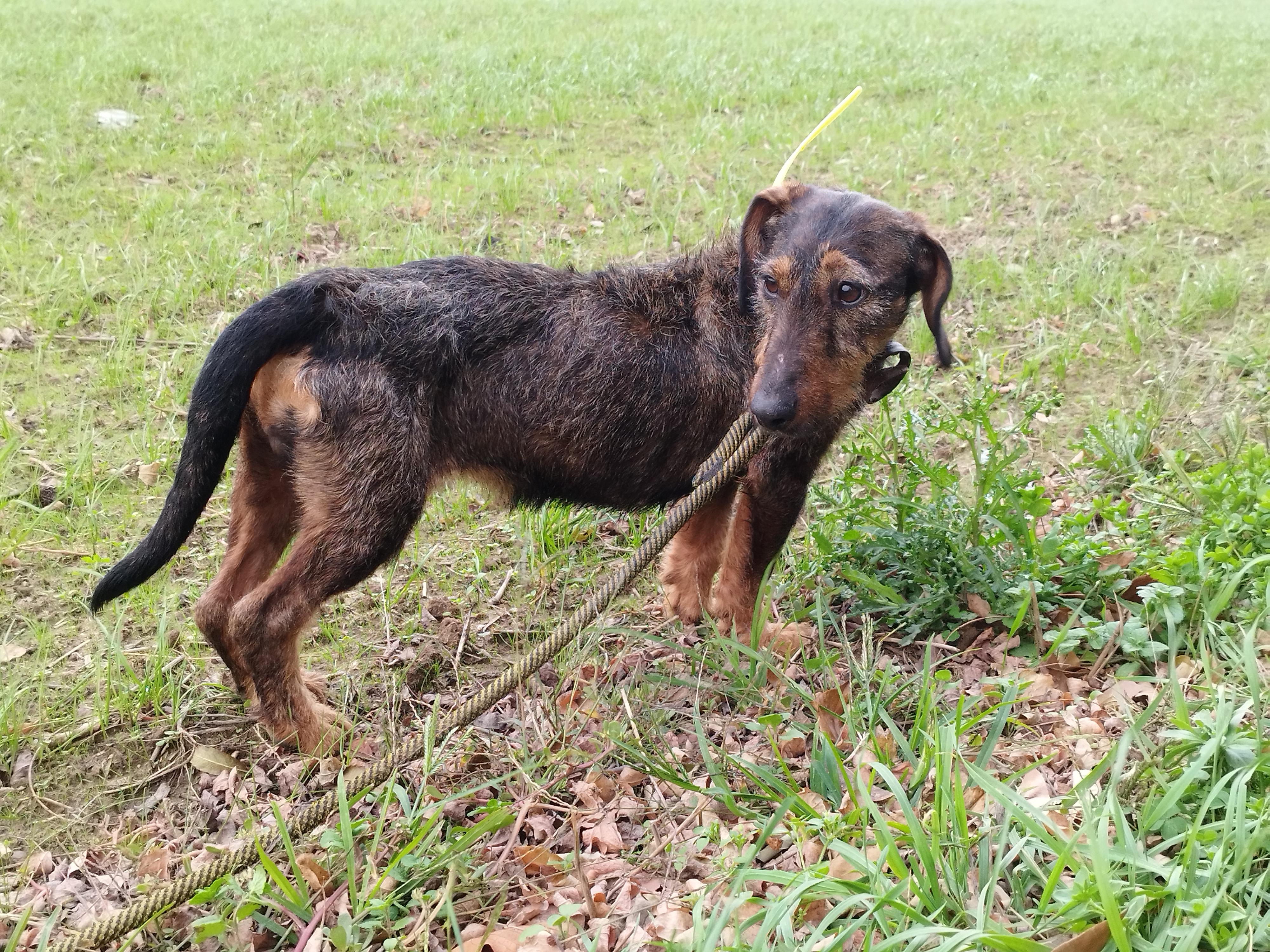 Jerry est de petite taille. C’est un très gentil chien qui aime les promenades. Jerry commence à se laisser approcher et caresser mais il est encore craintif et a besoin d’être rassuré. Il faut laisser du temps au temps…